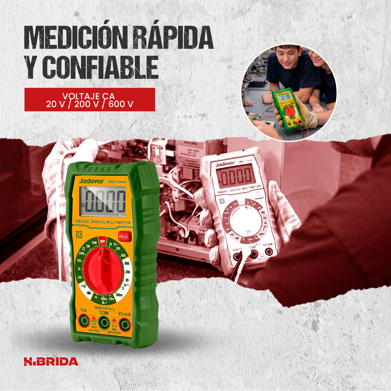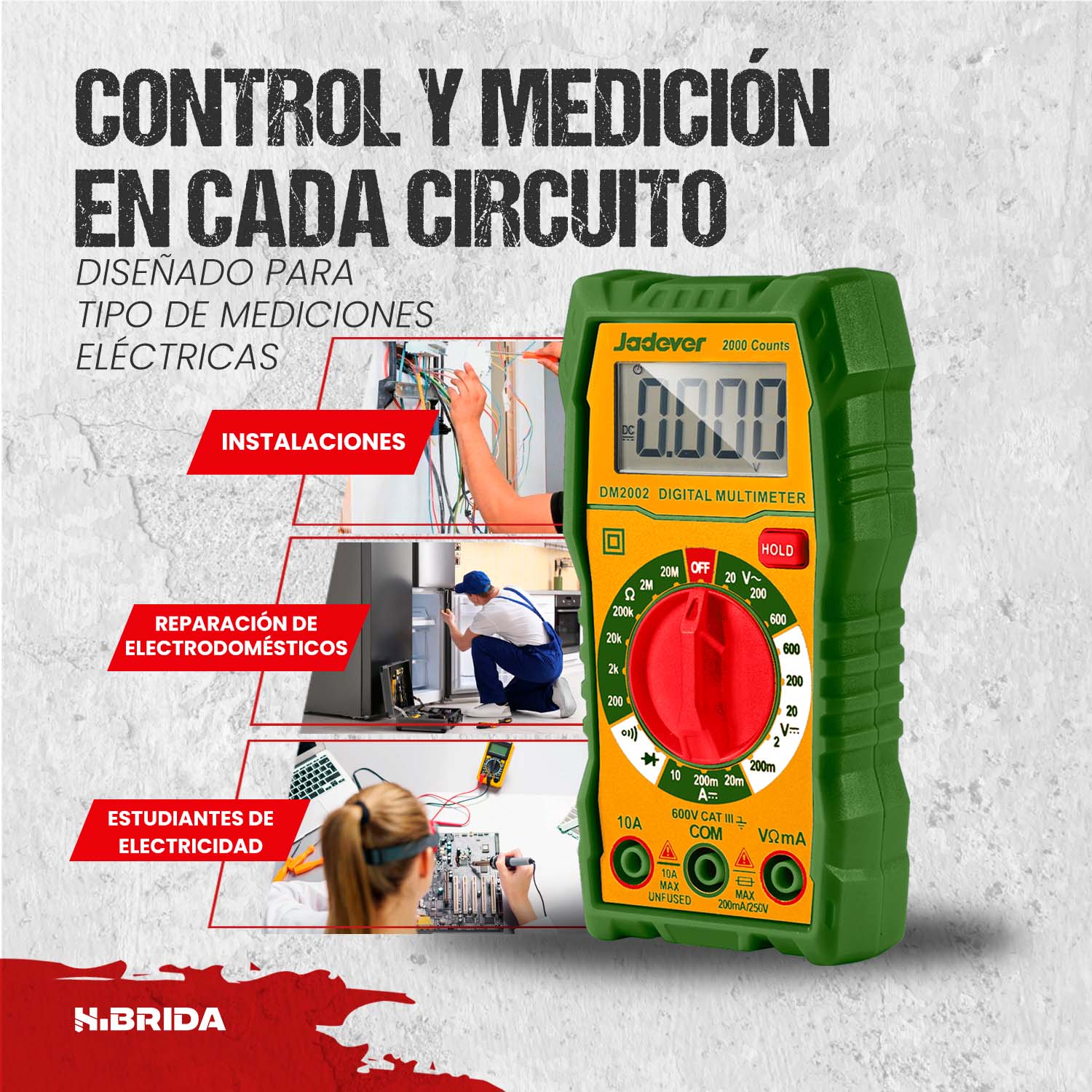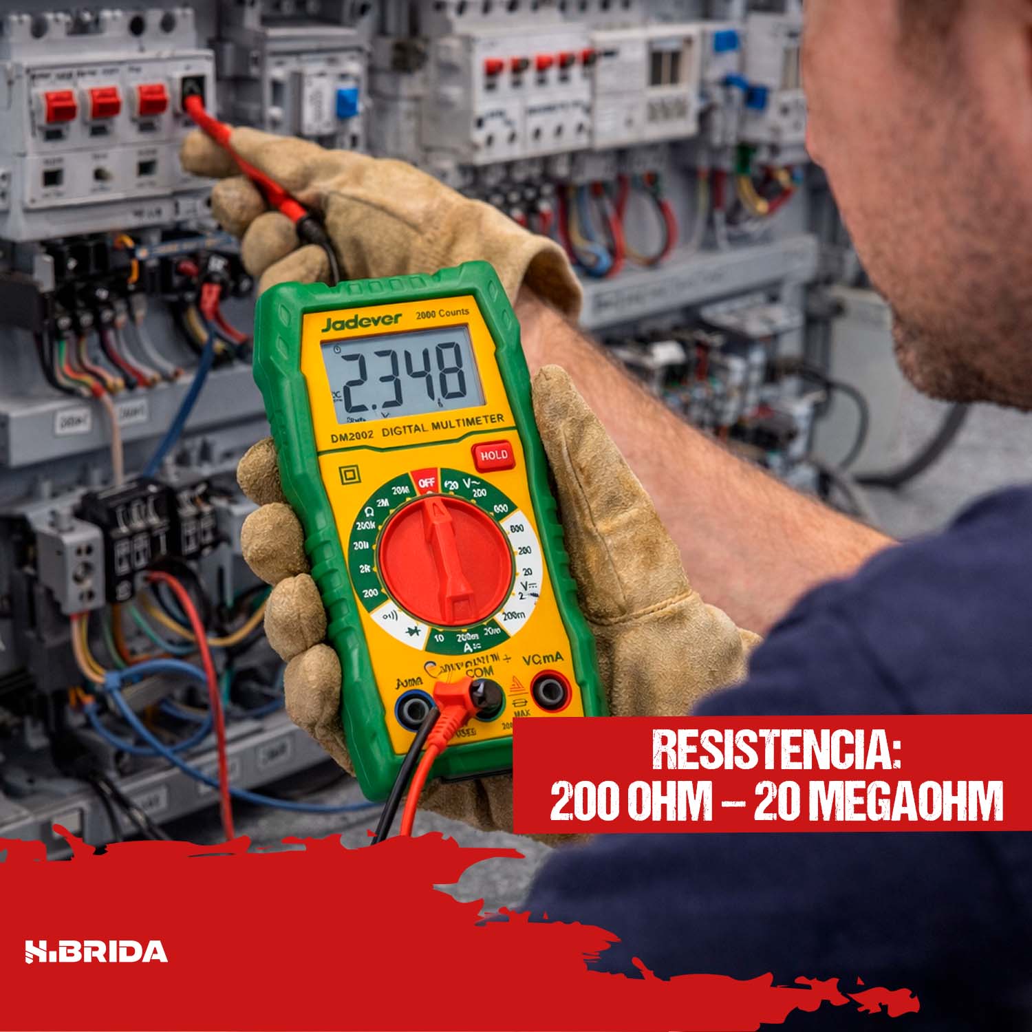 Multímetro digital profesional Jadever DM2002, ideal para mediciones eléctricas precisas en ambientes domésticos e industriales.