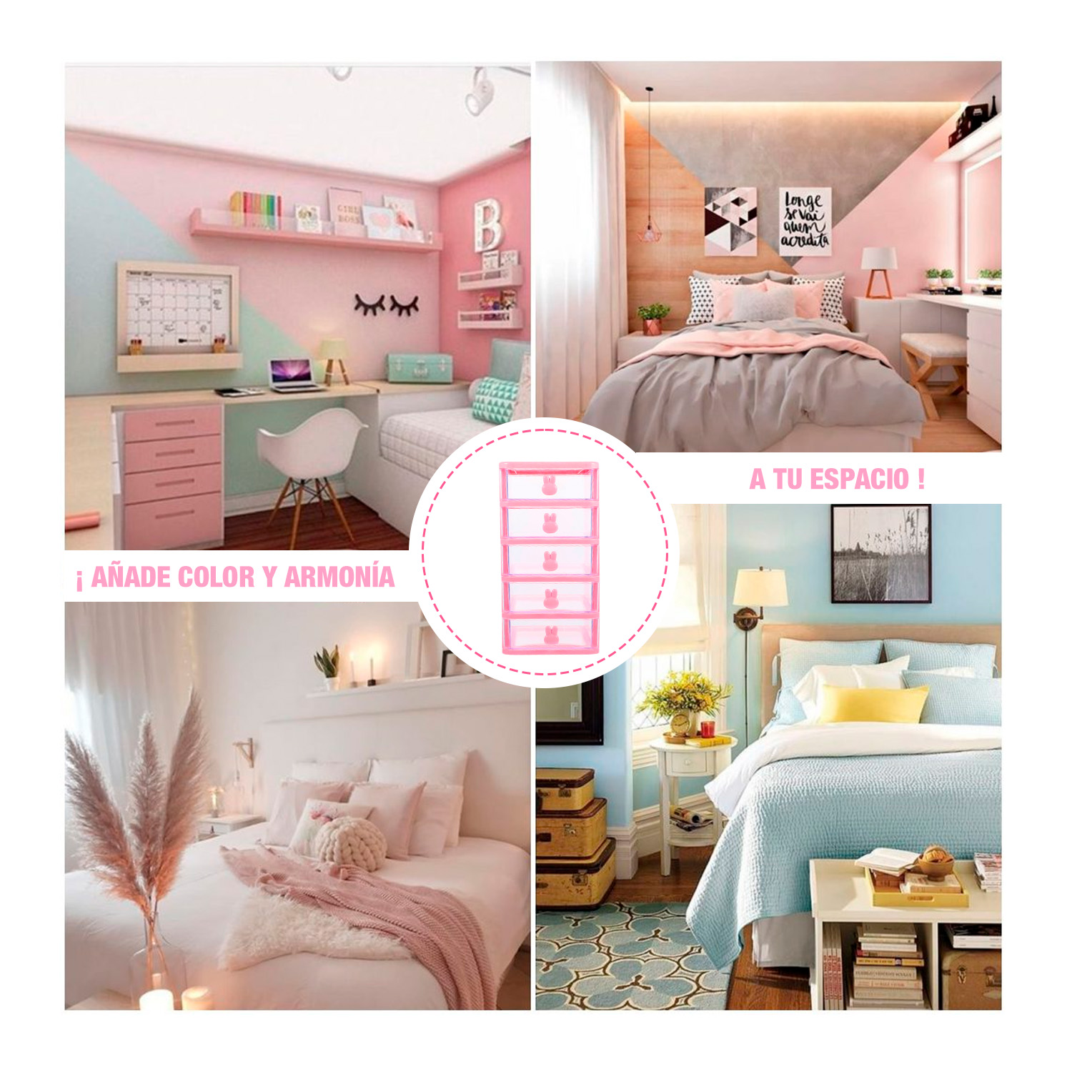 -Color: Rosa con cajones Transparentes