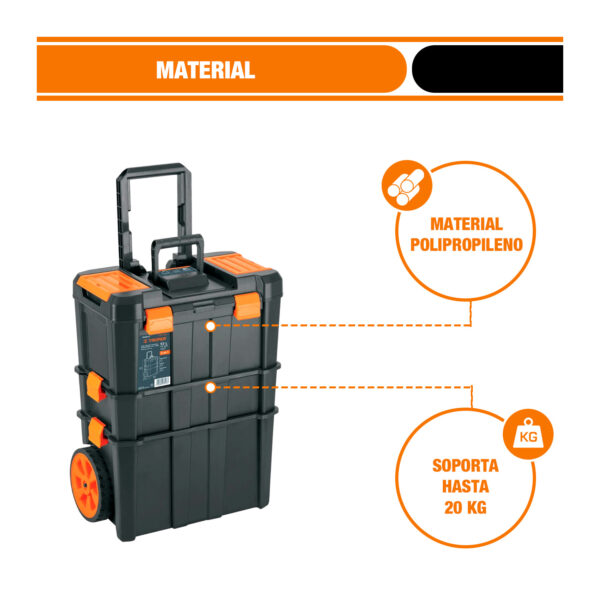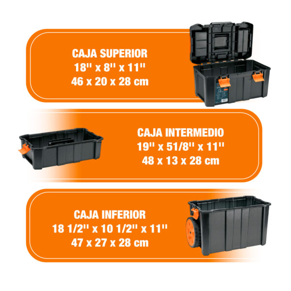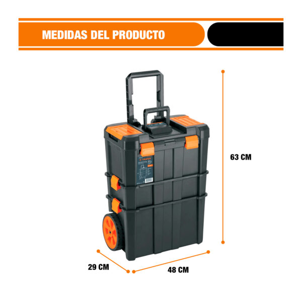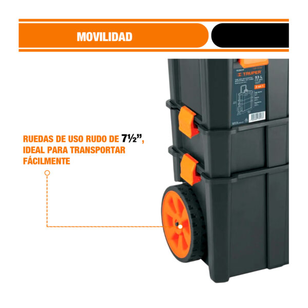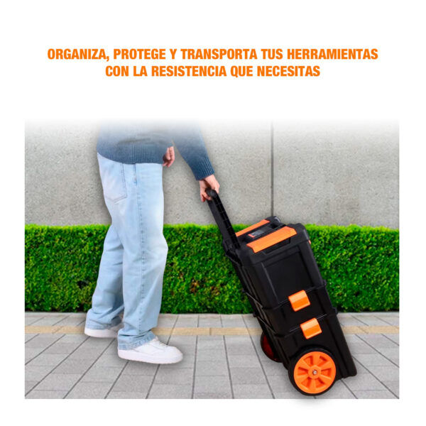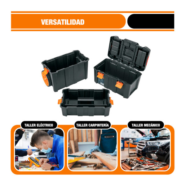 Mantén tus herramientas siempre organizadas y seguras con esta resistente caja 3 en 1. Su diseño desmontable con ruedas te permite transportarla con facilidad, ahorrando esfuerzo y tiempo en cada movimiento. Con amplio espacio interior y compartimentos bien distribuidos, tendrás a la mano todo lo que necesitas para tus proyectos. Ideal para el taller, el hogar o el trabajo en campo, combina practicidad, durabilidad y comodidad en un solo producto.
