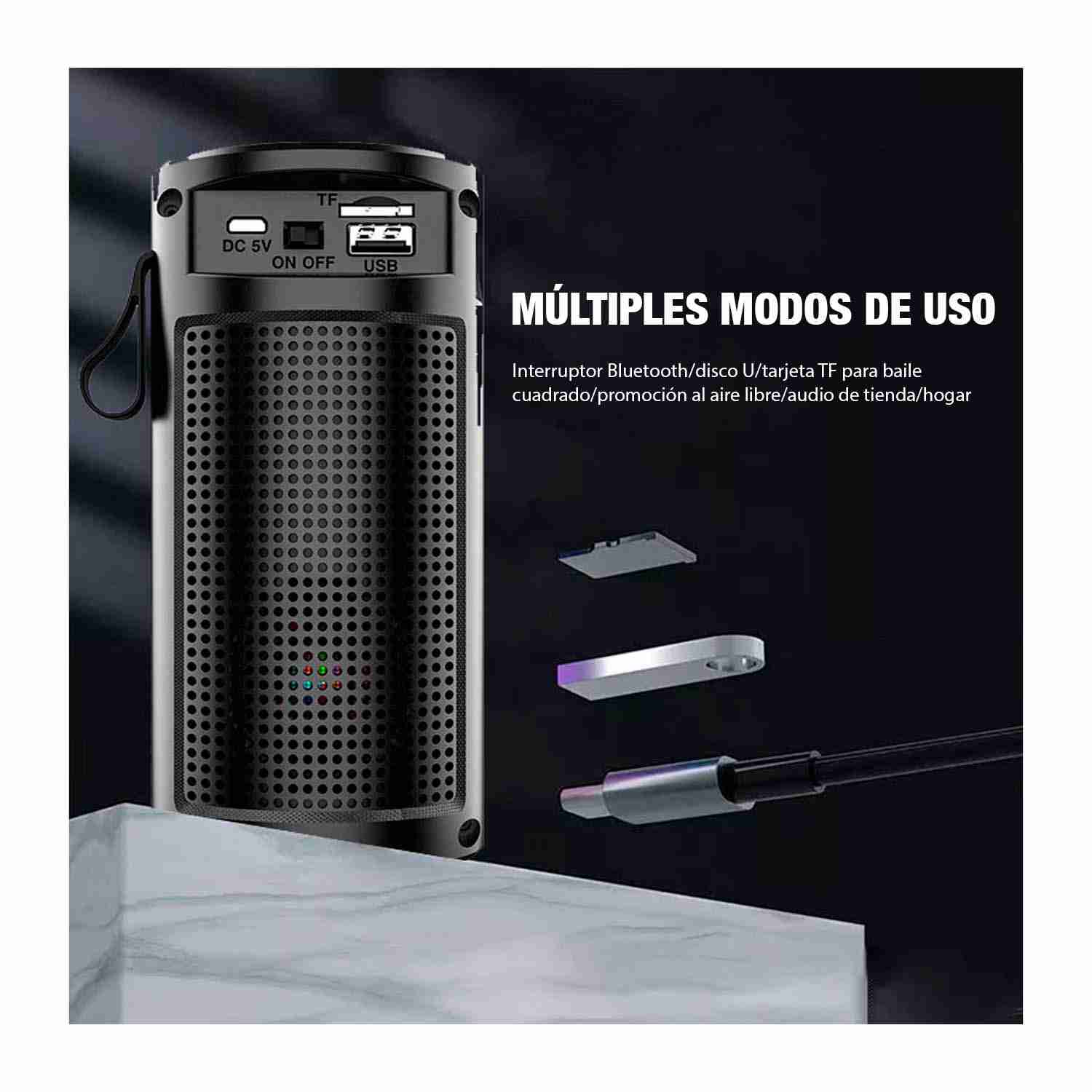 Lleva la música contigo a donde vayas y transforma cualquier espacio en una pequeña fiesta. Este mini parlante combina potencia, estilo y funcionalidad en un diseño compacto que sorprende. Ideal para animar reuniones, relajarte en casa o acompañarte en tus aventuras, ofrece una experiencia sonora envolvente y visualmente vibrante gracias a sus luces integradas. Su tamaño no limita su capacidad, y su versatilidad lo convierte en el compañero perfecto para tu día a día. ¡Conéctate, reproduce y disfruta sin complicaciones!