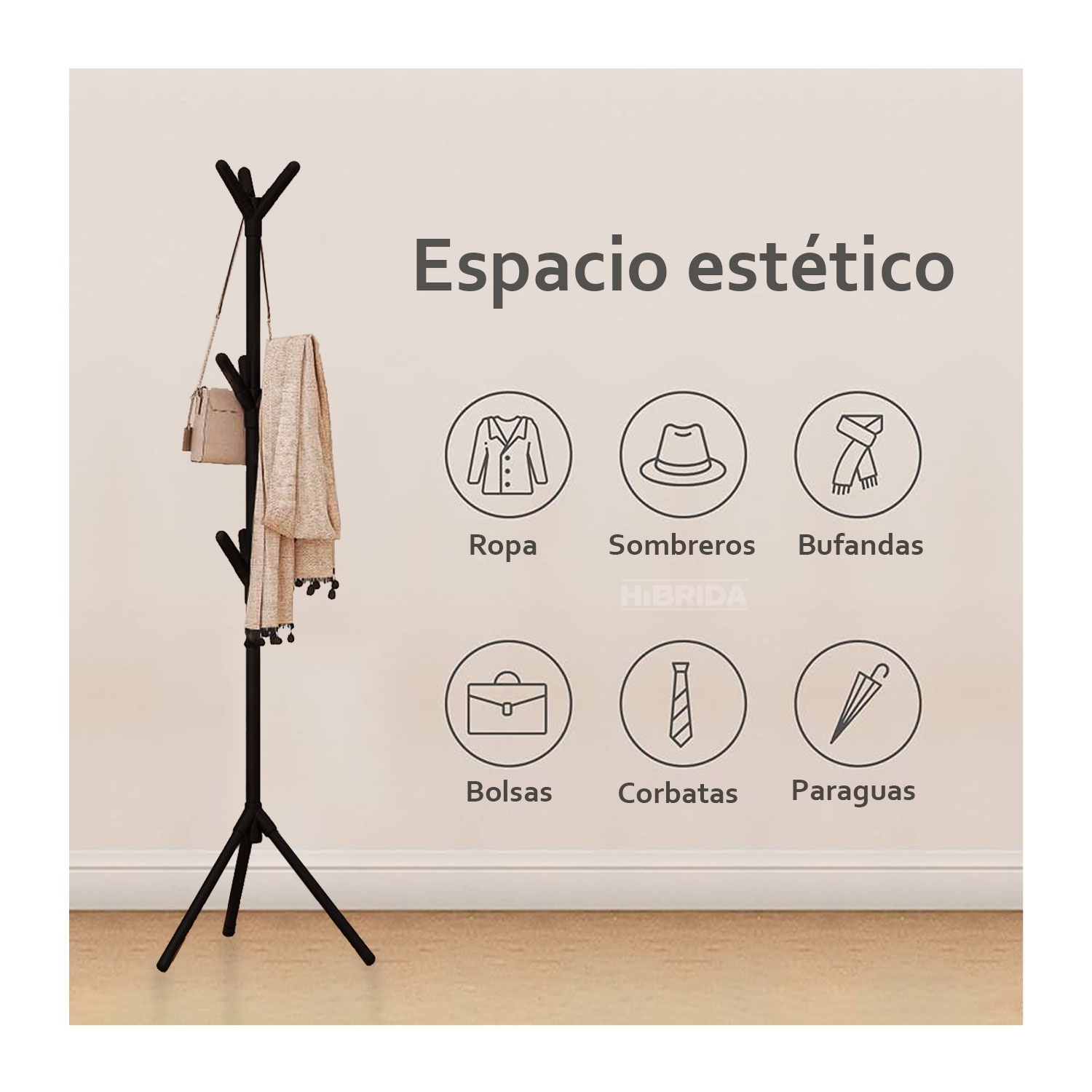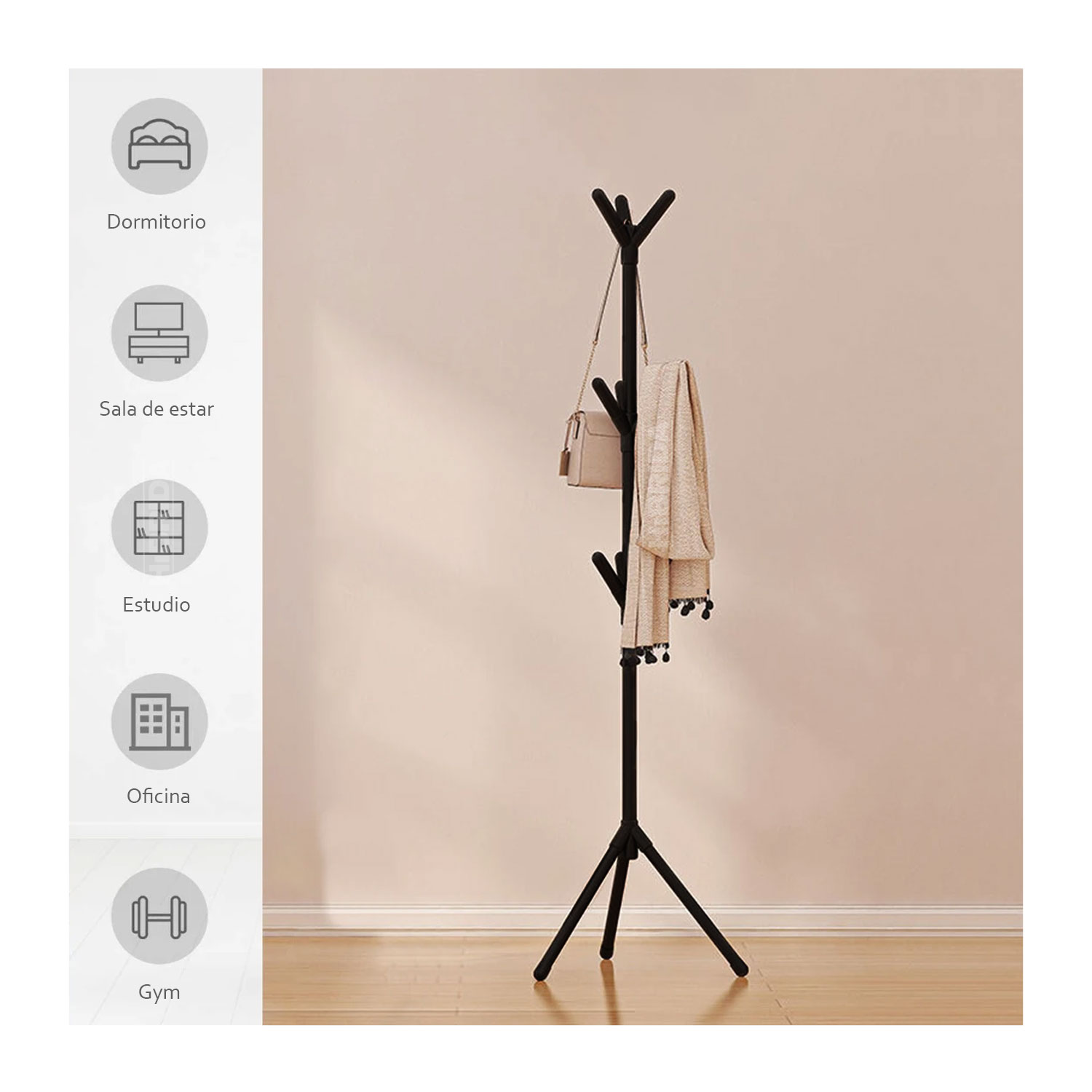 El estilo elegante hacen que este perchero pueda combinar de forma armoniosa con la decoración de su casa estructura y detalles; los ganchos llevan tapones para evitar rasguños a las prendas u objetos que se cuelguen, evitando a su vez que se resbalen del gancho montaje y sencillo.