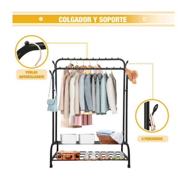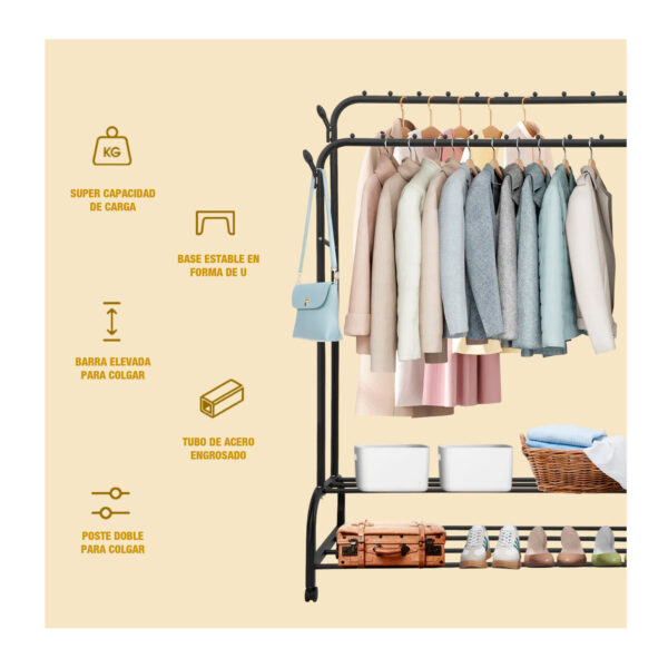 Perchero Organizador Metálico Con Ruedas Doble Nivel Yp.610