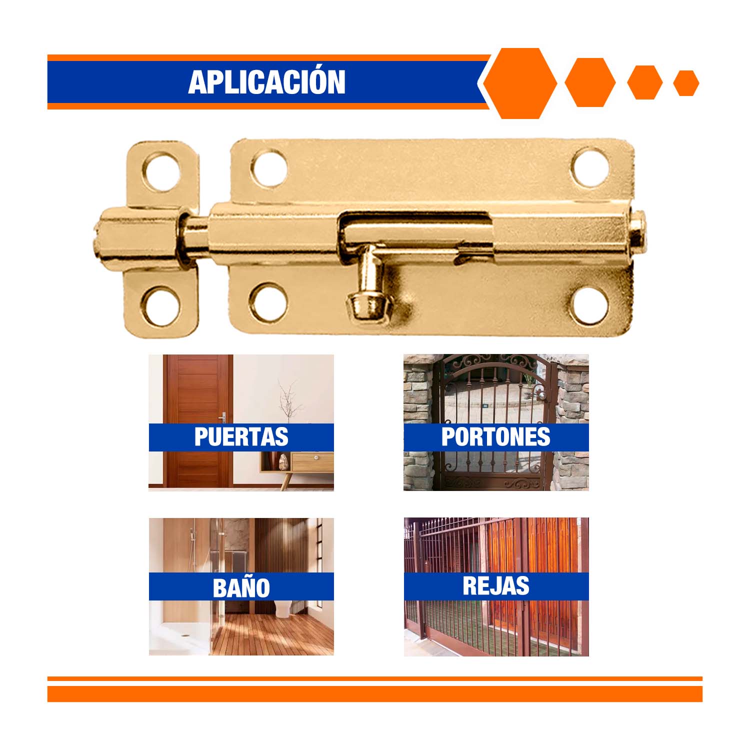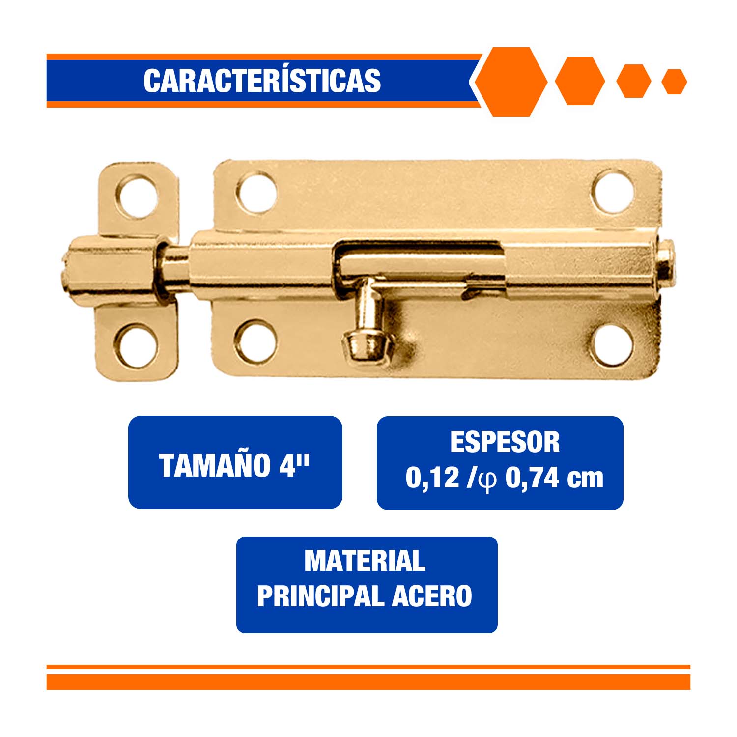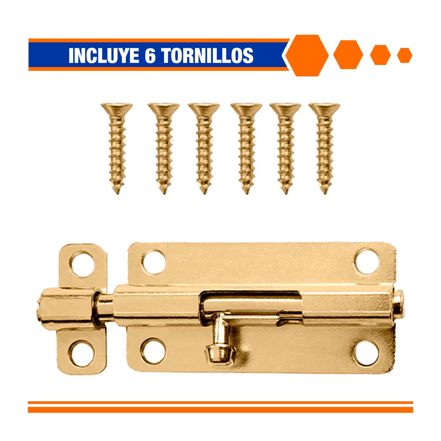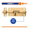 El pestillo recto 4" WADFOW para puertas está diseñado para asegurar puertas, portones y ventanas de forma sencilla, fabricado en acero resistente, permite instalación tanto horizontal como vertical, ofreciendo versatilidad en distintos tipos de cerramientos. Su acabado color cobre brinda durabilidad y una apariencia estética adecuada para uso doméstico y comercial.