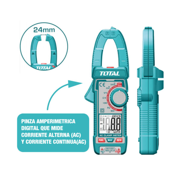 El TMT762001 es un medidor práctico y confiable, diseñado para realizar comprobaciones eléctricas de manera segura y precisa. Gracias a su diseño tipo pinza, permite medir corriente sin necesidad de interrumpir el circuito, lo que lo hace muy útil en instalaciones y mantenimientos. Cuenta con una pantalla digital de fácil lectura y funciones adicionales que facilitan la detección de valores eléctricos en distintos rangos. Es una herramienta indispensable tanto para profesionales como para técnicos de servicio, ya que combina versatilidad, seguridad y comodidad en un formato portátil.