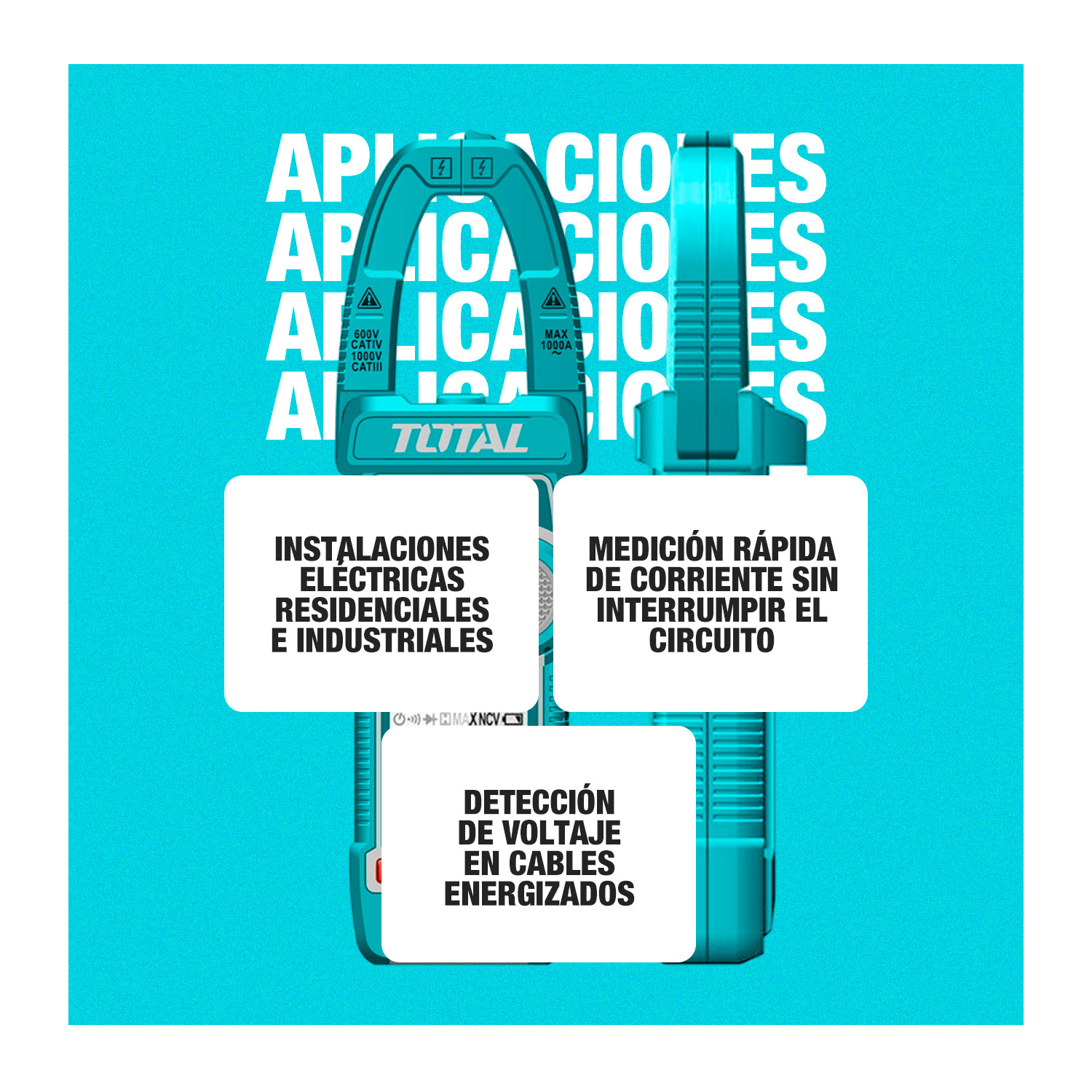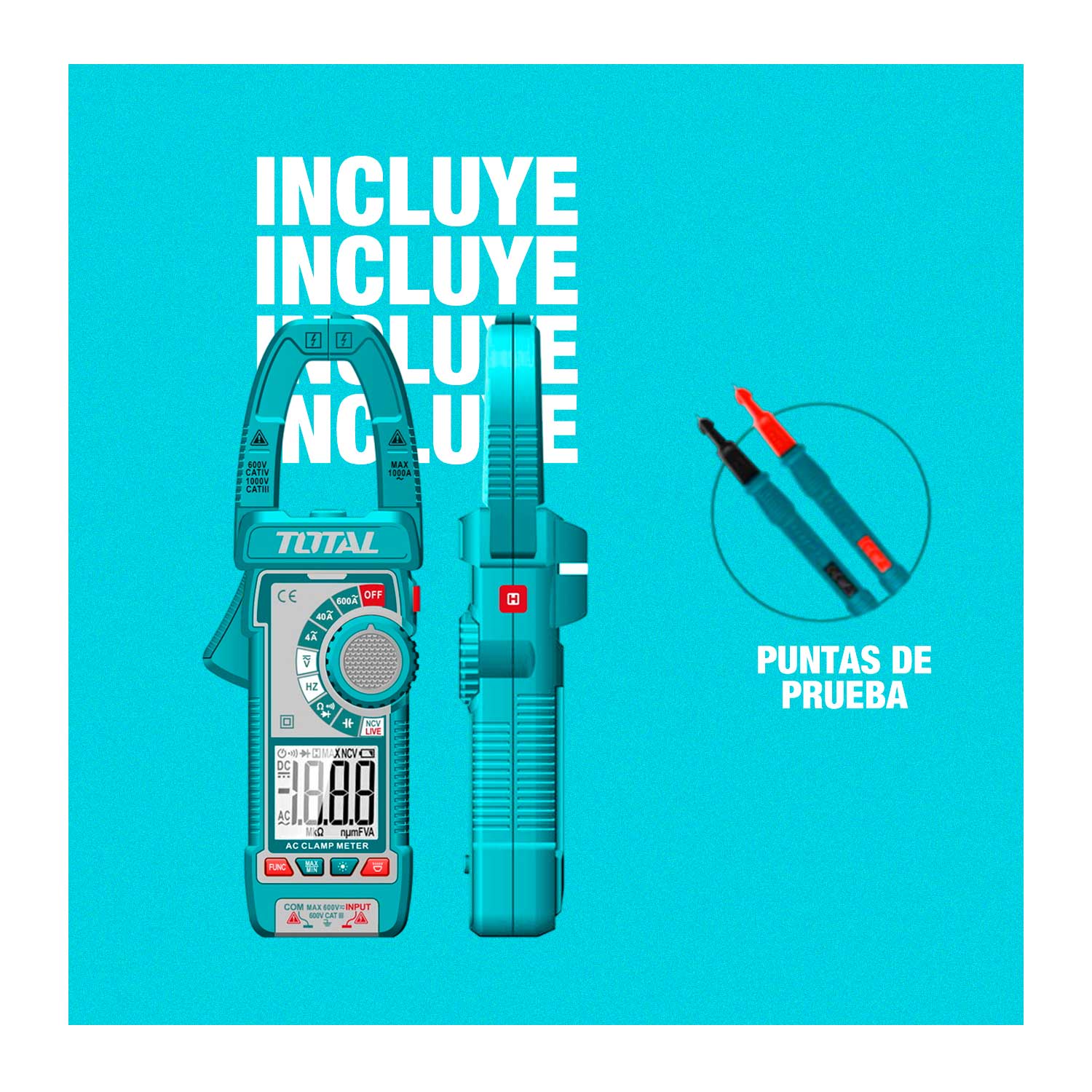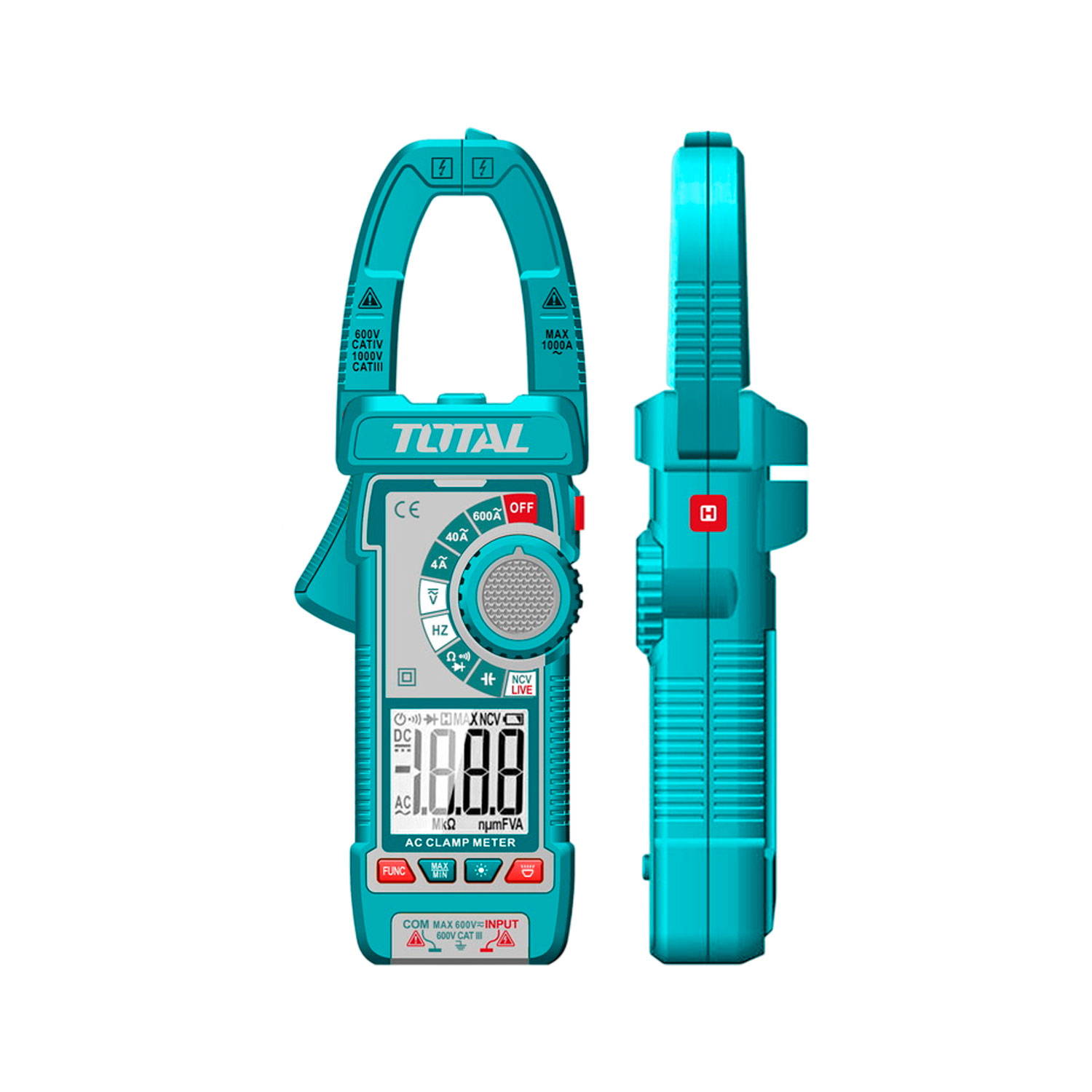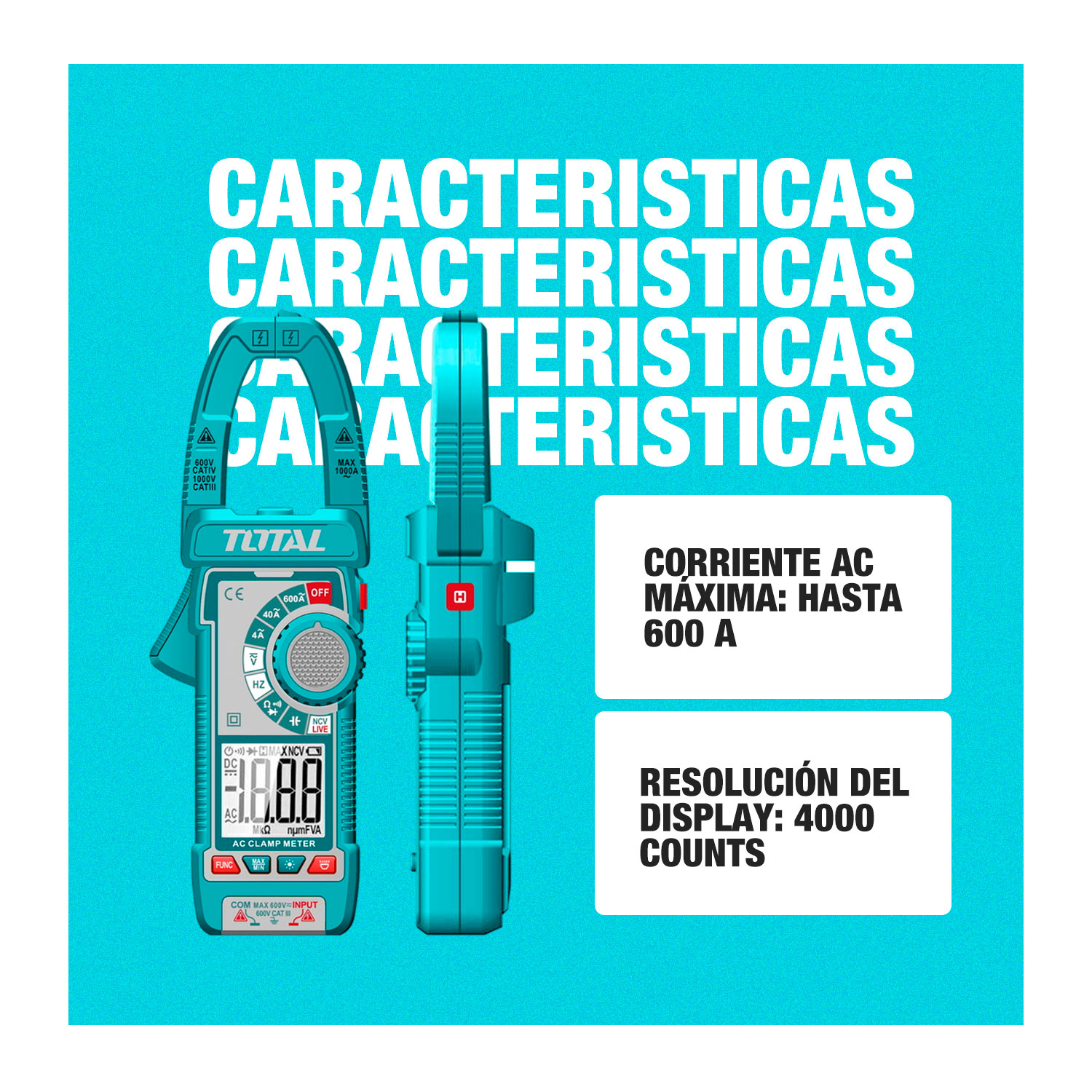 La TOTAL TMT766001 es una pinza amperimétrica digital de grado industrial diseñada para medir con precisión corrientes de hasta 600A AC y voltajes de 600V (AC/DC) mediante tecnología True RMS. Este versátil multímetro destaca por incluir funciones avanzadas de seguridad y diagnóstico, como la detección de voltaje sin contacto (NCV), medición de baja impedancia (LowZ) para eliminar voltajes fantasma, y capacidad para medir resistencia, capacitancia y frecuencia. Su diseño ergonómico cuenta con una pantalla retroiluminada de 4000 cuentas, linterna integrada y clasificación de seguridad CAT III 600V, lo que la convierte en una herramienta esencial y confiable para electricistas profesionales en 2026.