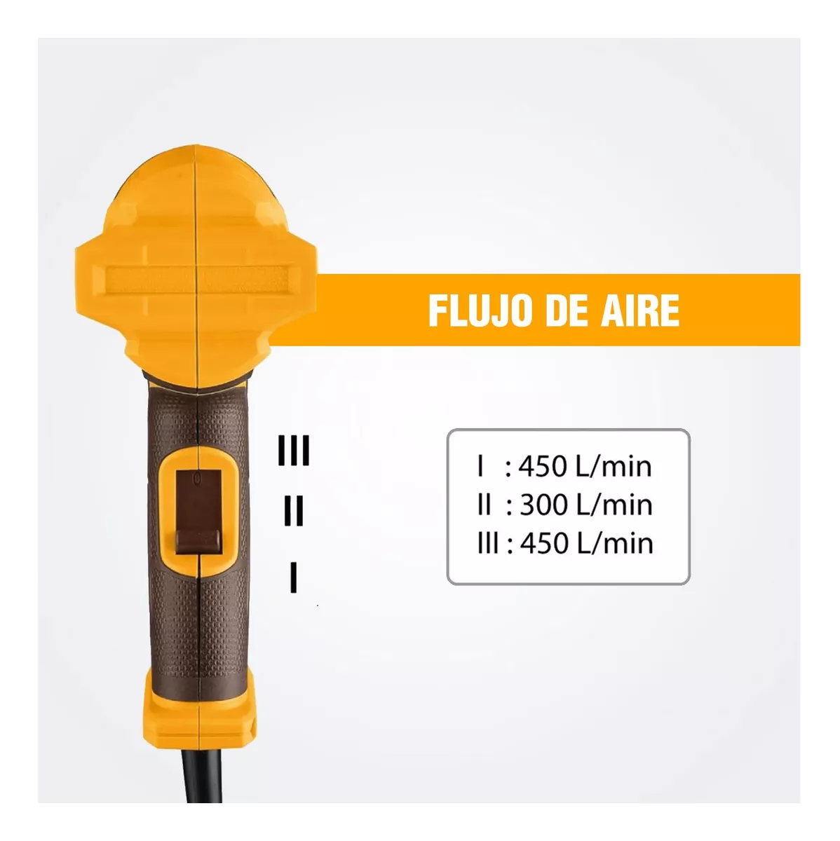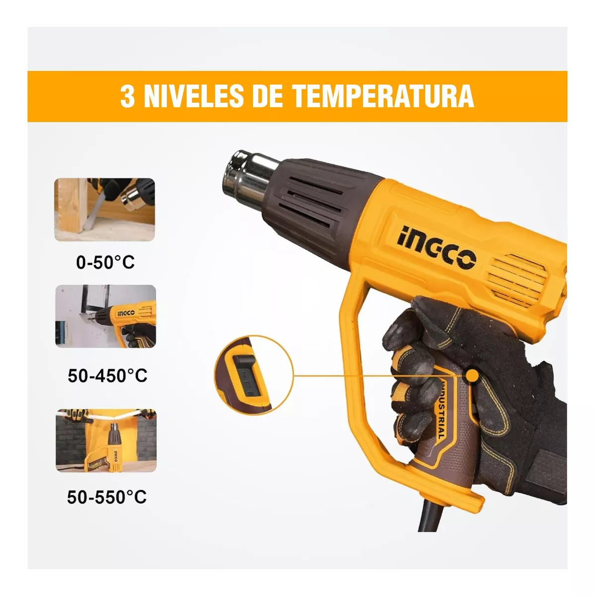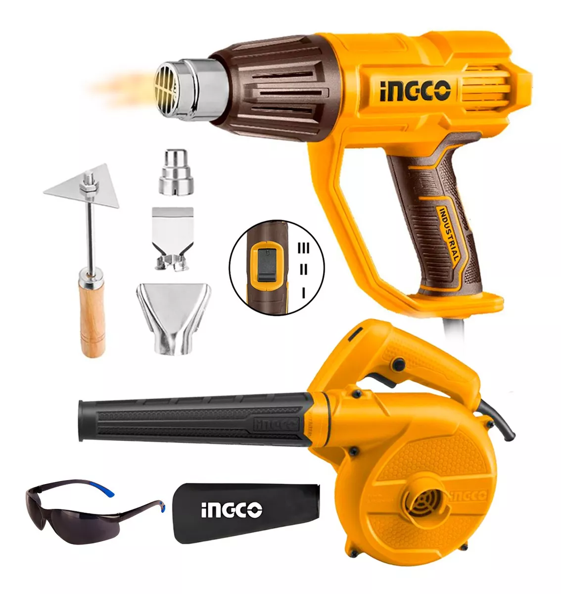 PISTOLA CALOR 2000W 3 TEMPERATURA + SOPLADORA 400W INGCO