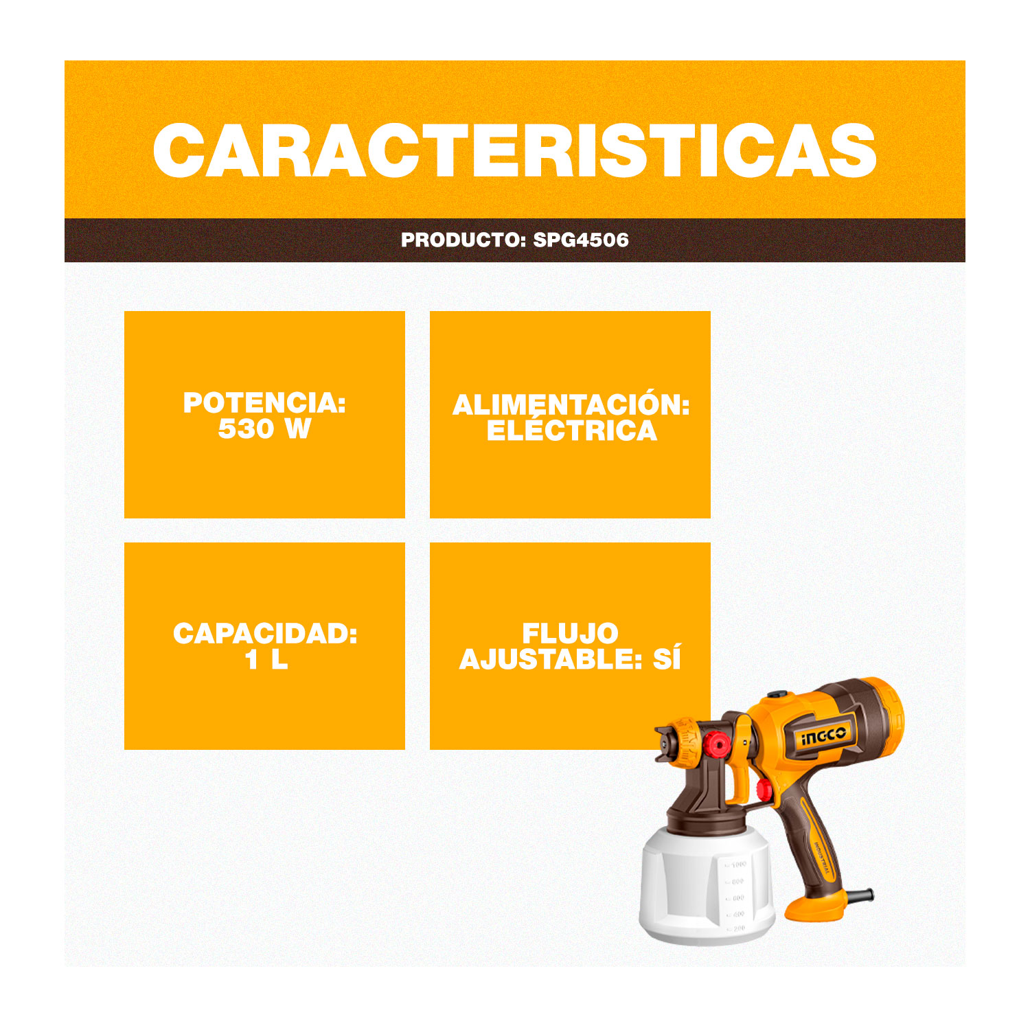 Pistola De Pintar Eléctrica 1l 530w Ingco Profesional