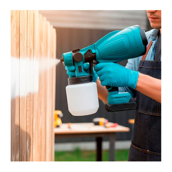 Esta es una pistola pulverizadora inalámbrica, diseñada para facilitar trabajos de pintura de manera rápida, uniforme y sin esfuerzo. Funciona con batería recargable, lo que brinda mayor movilidad y comodidad al usuario, evitando cables y conexiones. Su diseño ergonómico y ligero permite un manejo sencillo, mientras que el depósito integrado asegura una aplicación continua y eficiente en superficies de distintos tamaños. Ideal para proyectos de bricolaje, mantenimiento del hogar y aplicaciones profesionales en madera, metal o paredes.