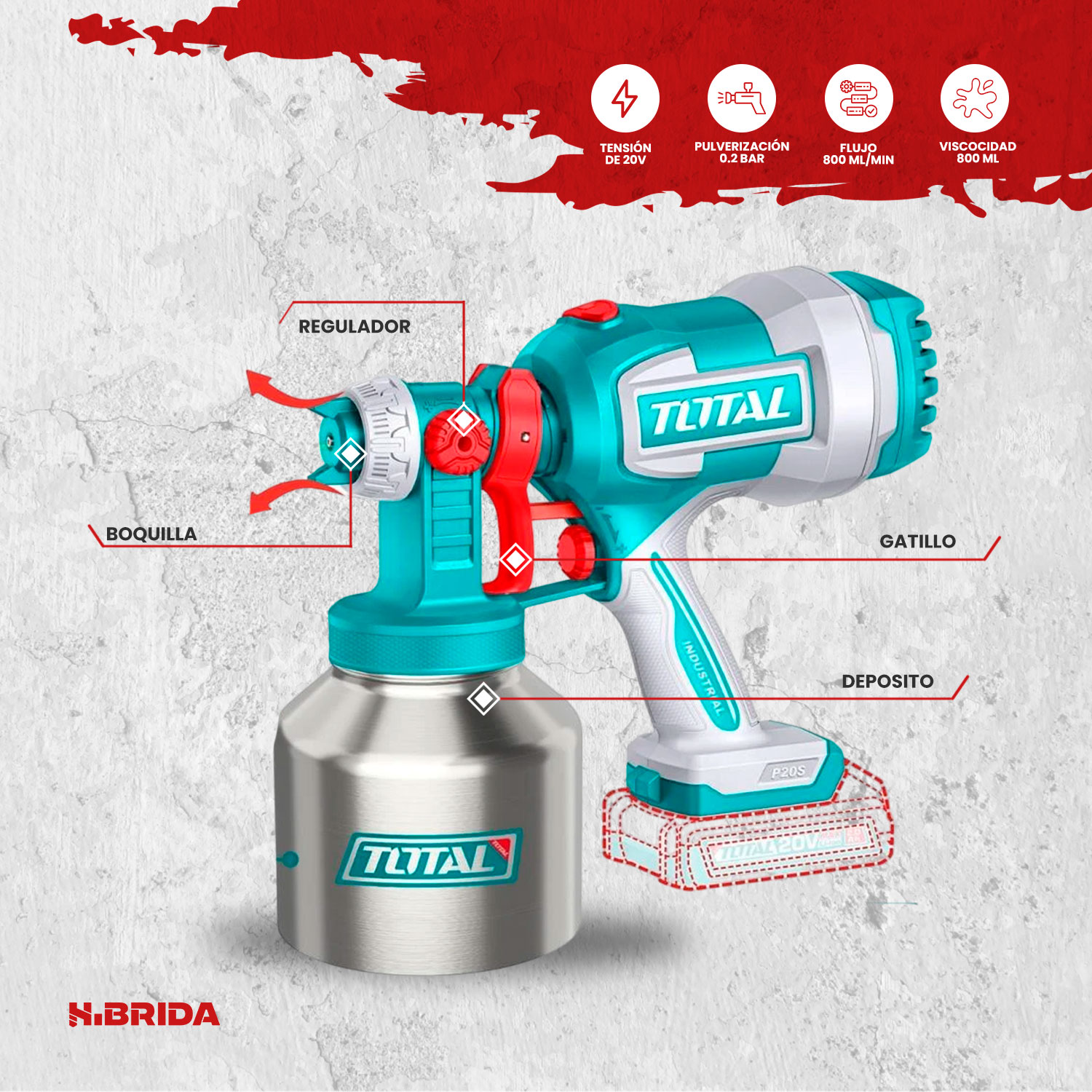 Pistola Para Pintar Inalámbrica 20v Total Alta Precisión
