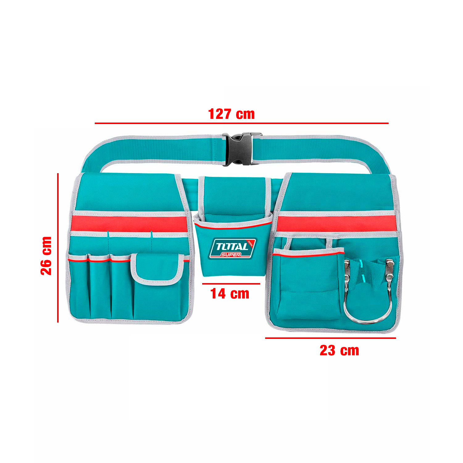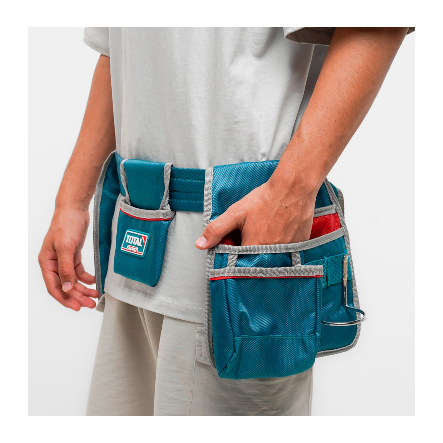 El porta herramientas está hecho de poliéster 1680D, conocido por su alta resistencia al desgaste y durabilidad, lo que garantiza una larga vida útil incluso en condiciones de trabajo intensivas.
