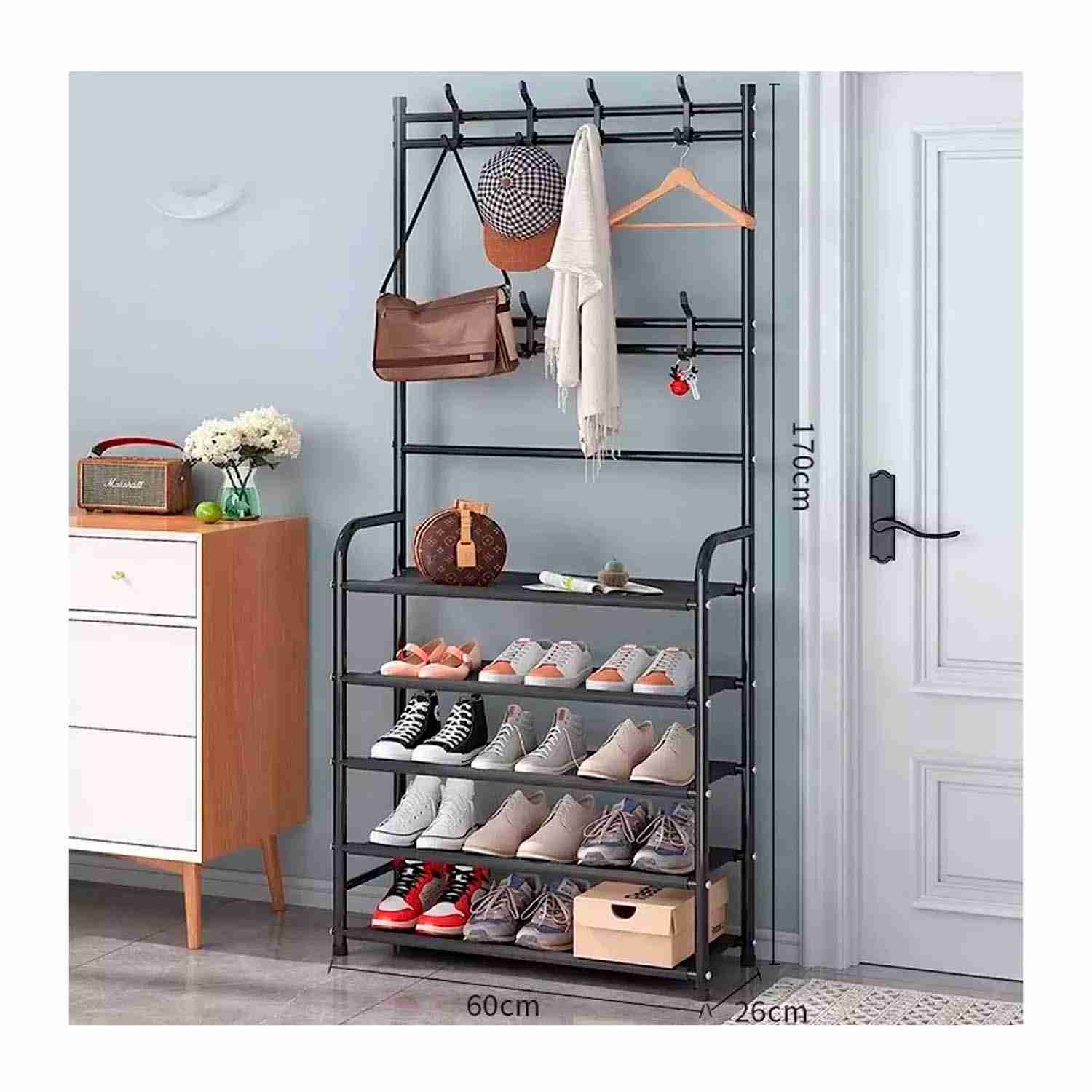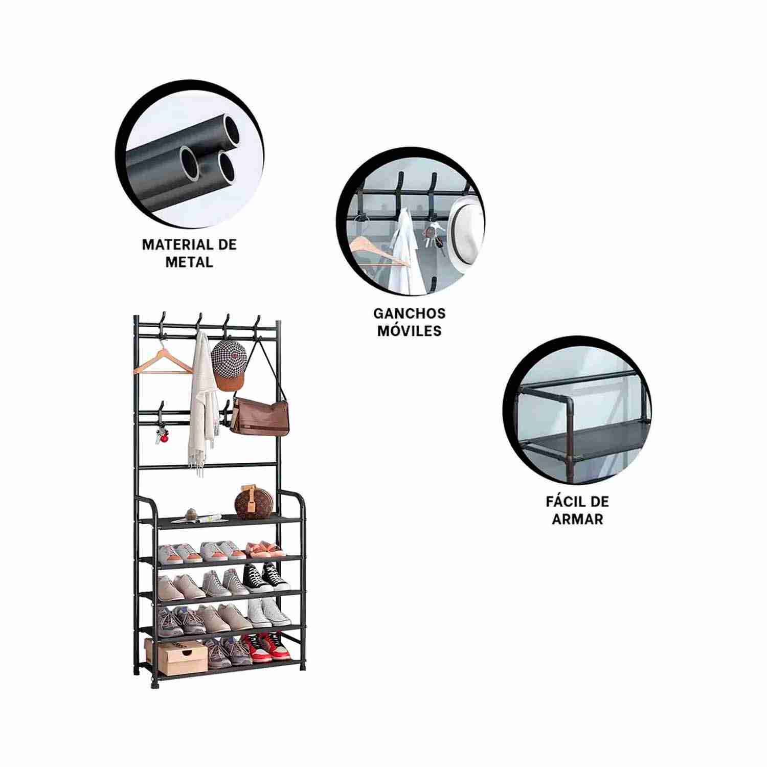 ¡Experimenta la máxima organización y funcionalidad con nuestro innovador Zapatero de 5 Niveles y Perchero! Diseñado para ofrecerte un espacio versátil y elegante donde guardar tus zapatos, sandalias y zapatillas con facilidad, este organizador esencial es mucho más que un simple mueble. Con sus colgantes especiales, también proporciona un lugar conveniente para tus carteras y abrigos al llegar a casa, manteniendo todo ordenado y al alcance. Construido con resistente metal, garantiza durabilidad y estilo que perduran en el tiempo. Además, su diseño 3 en 1 combina perfectamente utilidad y estética, ofreciendo 5 niveles de almacenamiento para tus calzados favoritos.