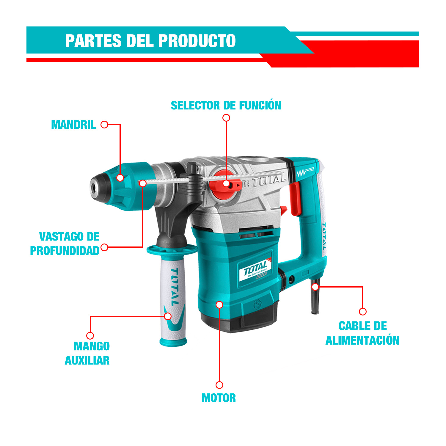Rotomartillo 2 Pzs Sds Plus 1800w 7joules Total-th118366 X 2 Turquesa 50-60hz