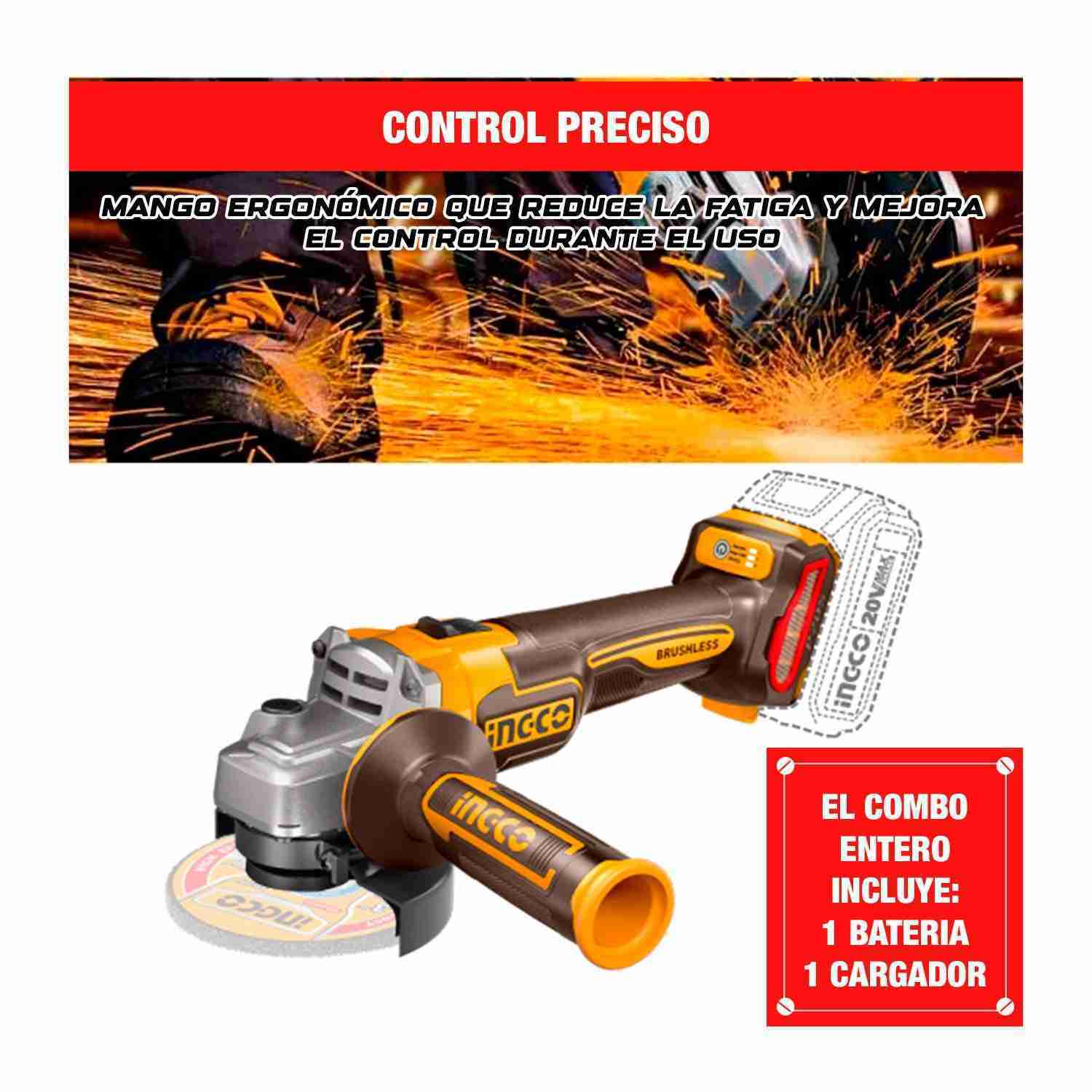SET AMOLADORA ANGULAR 20V BL + VALIJA INGCO
