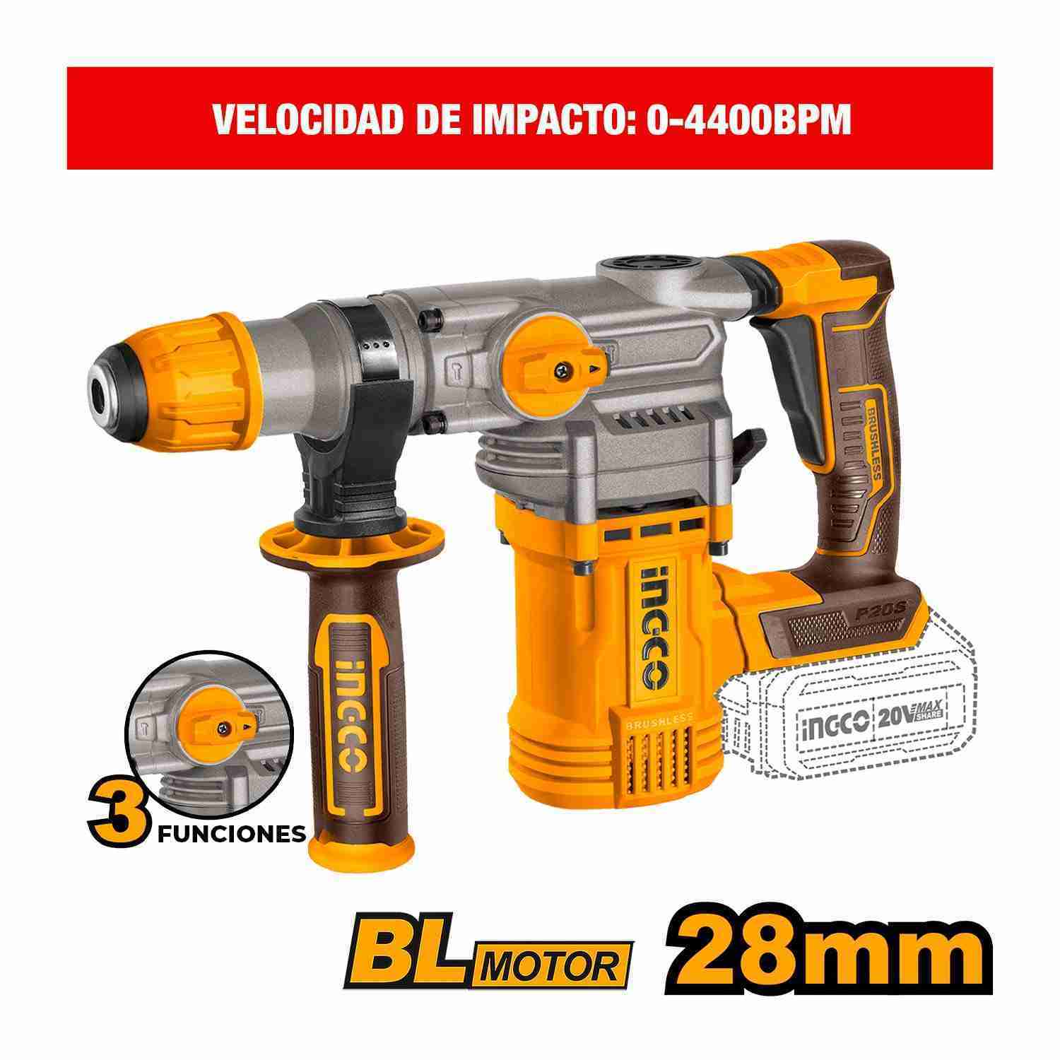 ROTOMARTILLO INALÁMBRICO BL + AMOLADORA 20V + ADAPTADOR