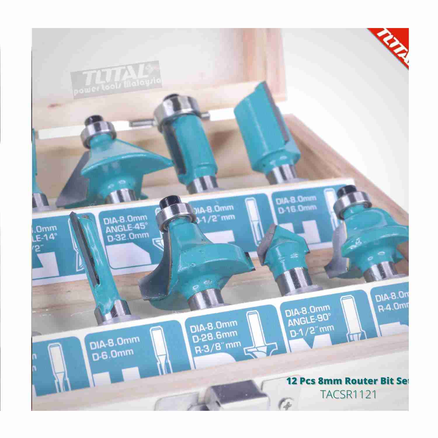 •SET DE 12 FRESAS PARA RUTEADORA 8MM INDUSTRIAL TOTAL - TACSR1121•