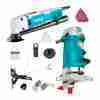 Este combo reúne una herramienta multifuncional de 300W y una ruteadora de palma de 500W, ideales para trabajos de bricolaje, carpintería y reparaciones en casa.