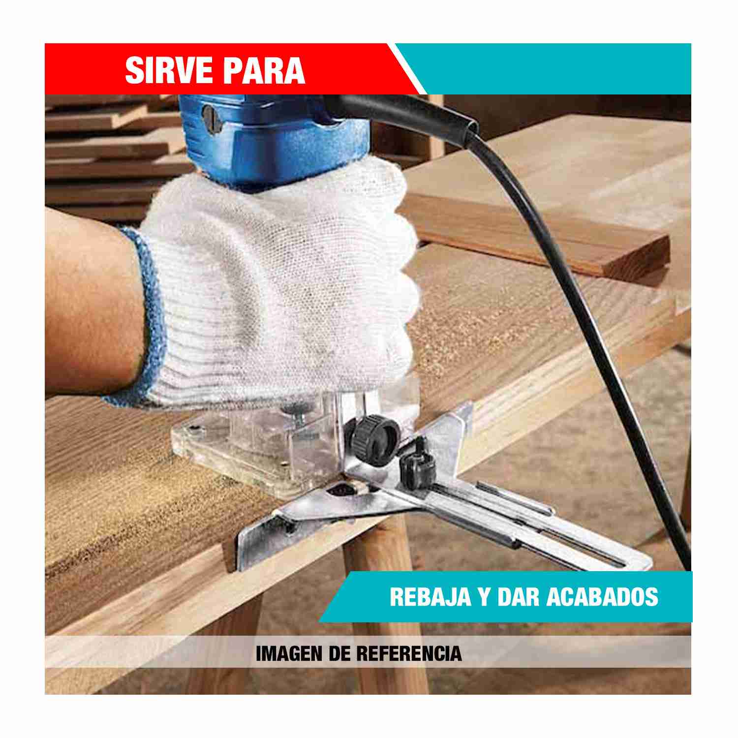 Utilizada para realizar cortes precisos en madera, plástico y otros materiales. Con una potencia de 500W y un tamaño compacto, es fácil de manejar y permite trabajar en espacios reducidos. La ruteadora cuenta con una base ajustable y una pinza de sujeción para fijar las brocas. Ideal para proyectos de carpintería y bricolaje en el hogar.