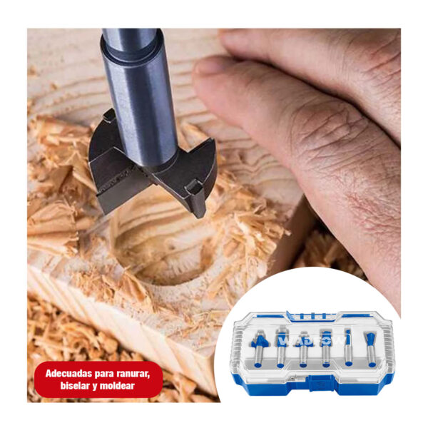 Cada pieza ha sido fabricada con materiales de alta durabilidad y un equilibrio perfecto entre resistencia y control, garantizando resultados consistentes incluso en los trabajos más exigentes. Su diseño versátil convierte este set en un aliado indispensable para crear molduras, ensambles y terminaciones finas con acabado impecable.
