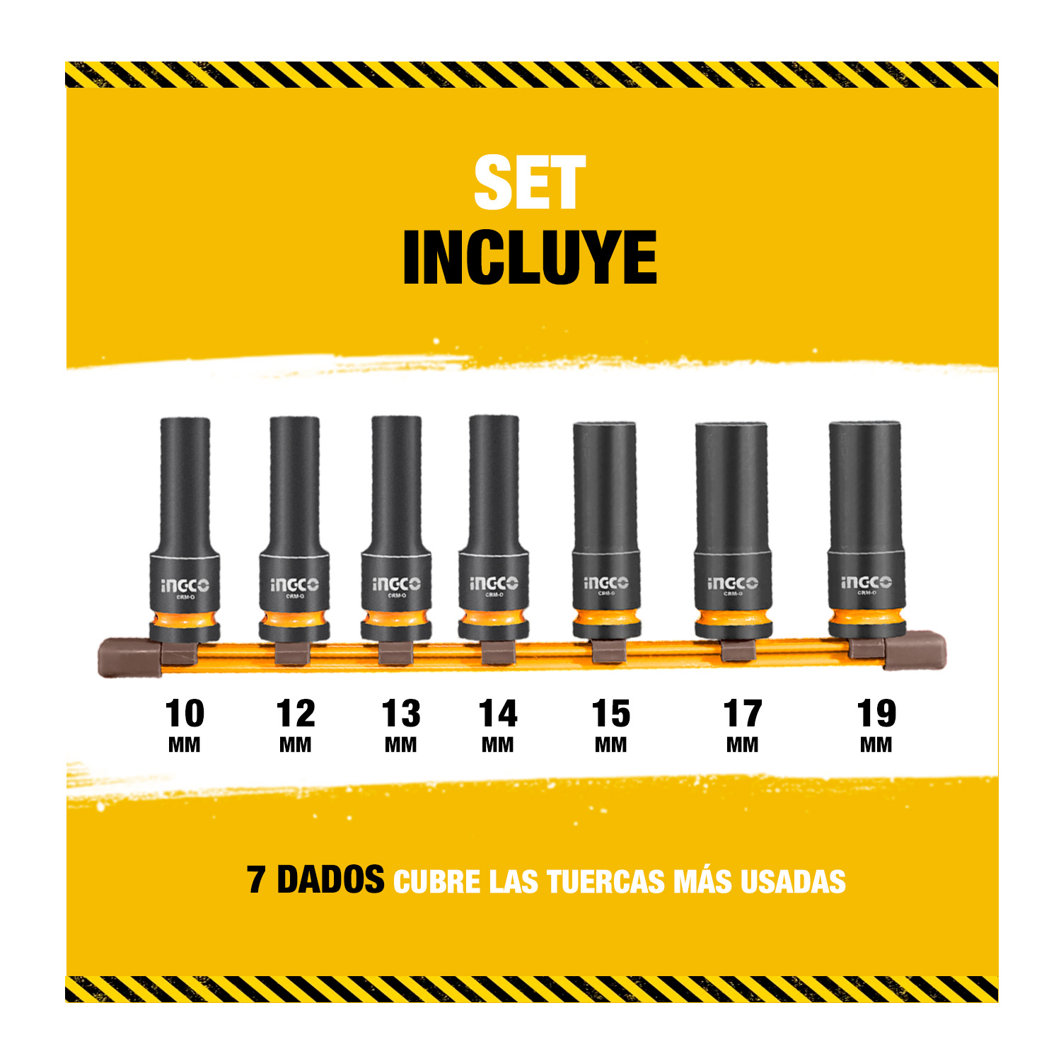 -7 llaves de vaso de impacto profundo: 10/12/13/14/15/17/19 mm.