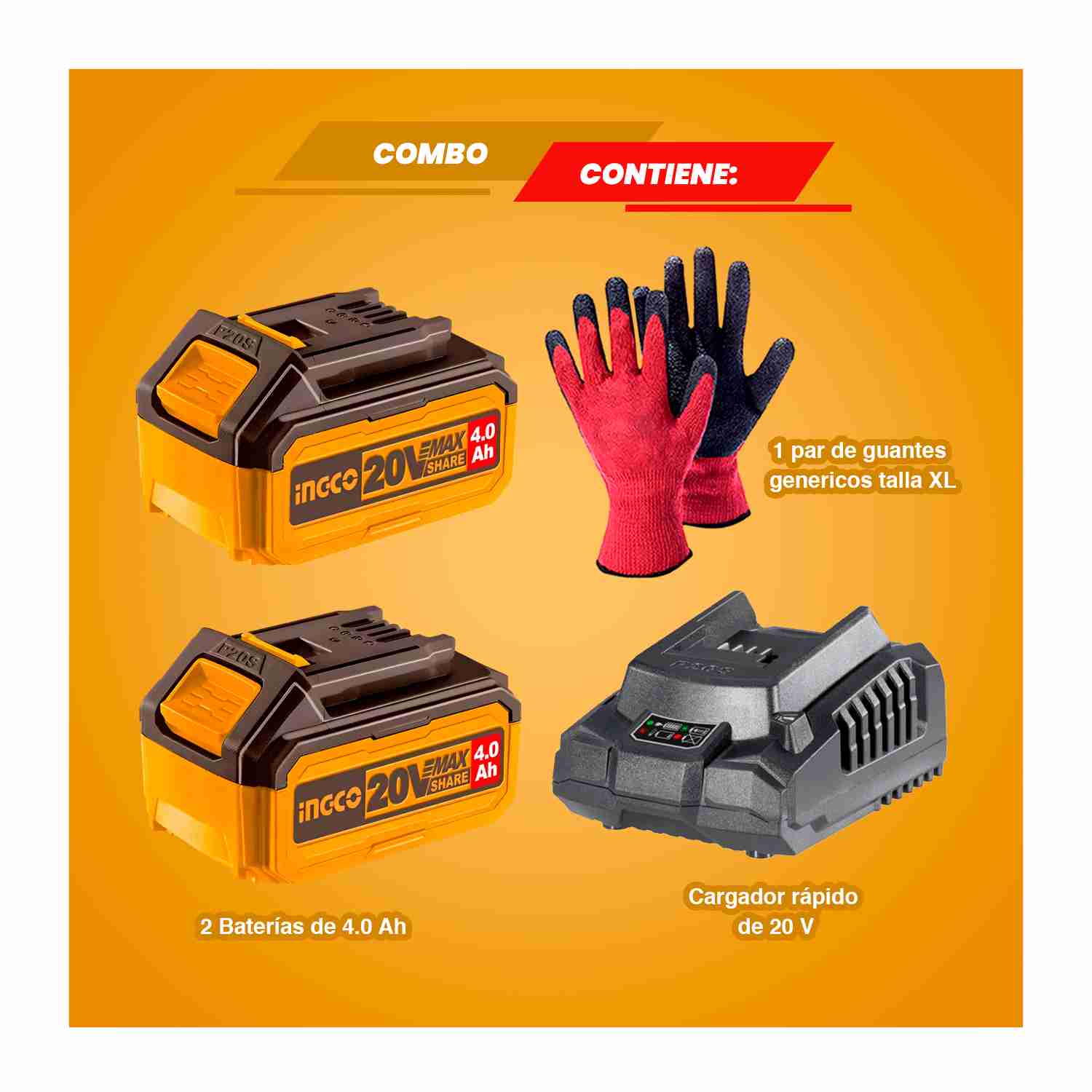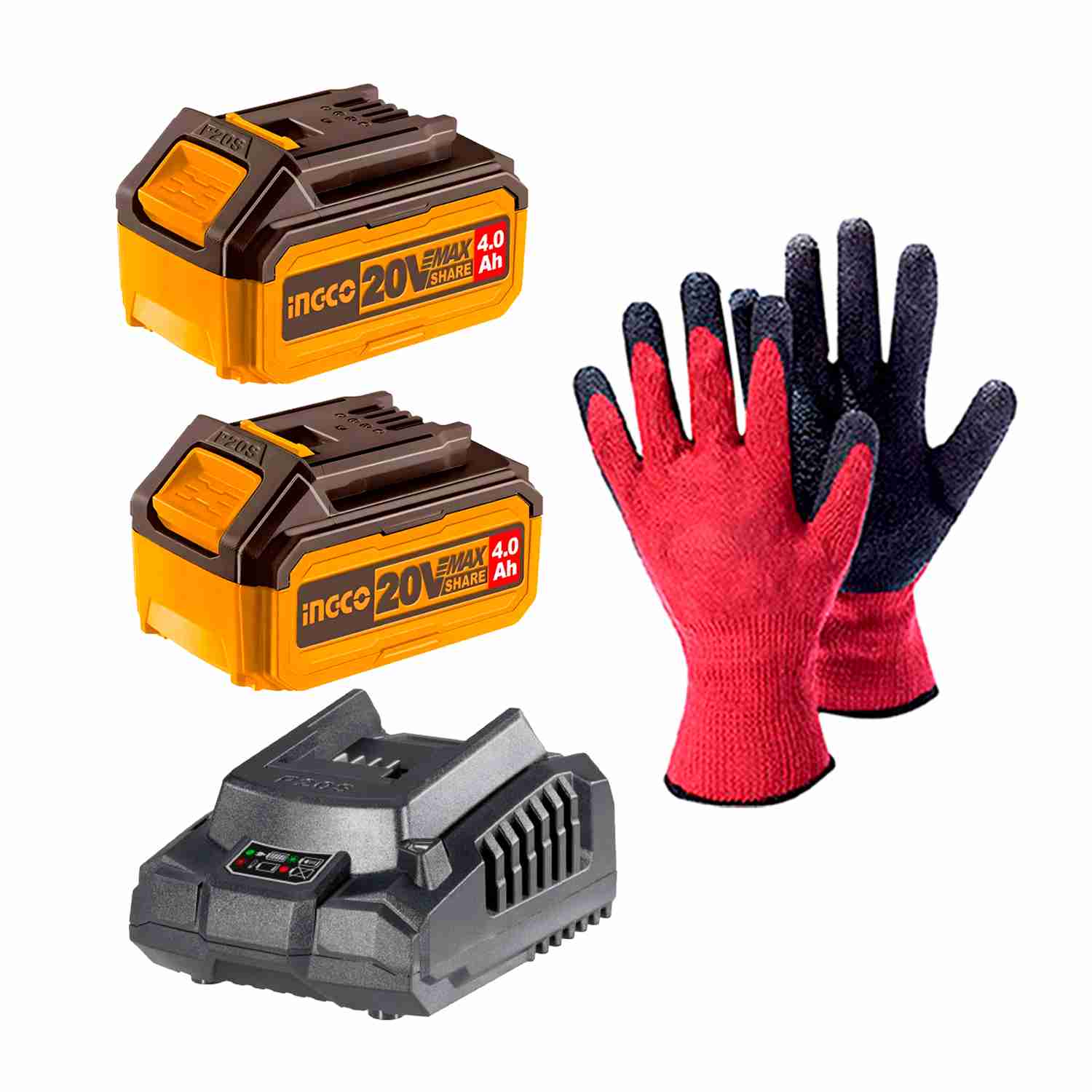 Set Batería Litio 20v 2pz Cargador Multiherramientas Guantes