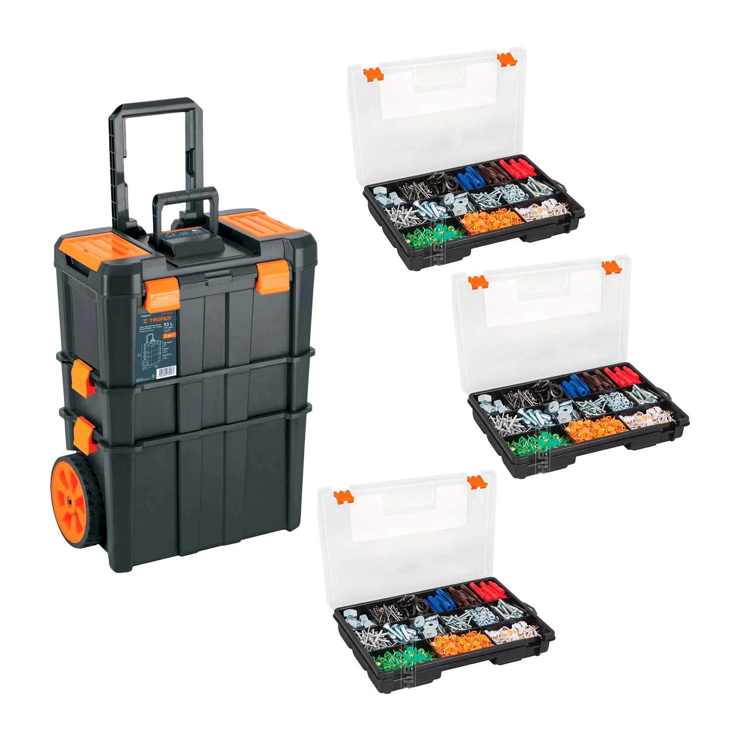 SET CAJA HERRAMIENTAS +3 ORGANIZADORES DE PLASTICO TRUPER NARANJA OSCURO