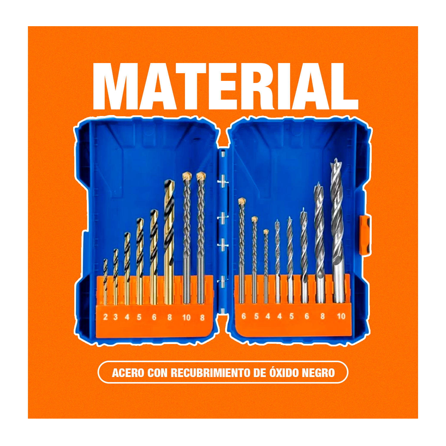 JUEGO DE BROCAS PARA METAL, MAMPOSTERÍA Y MADERA - WMJ6516
