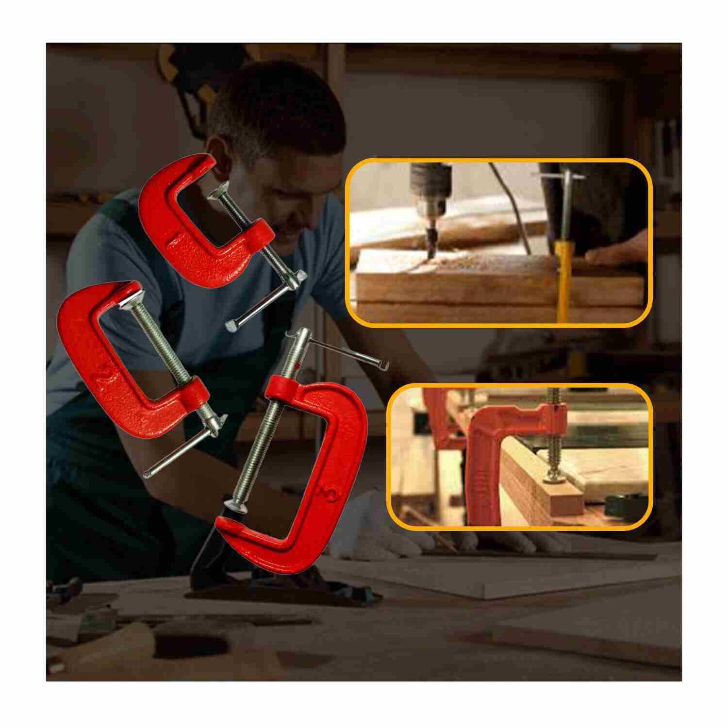 JUEGO DE PRENSA MODELO C KIT DE 3 UNIDADES ROJO - CLAMP