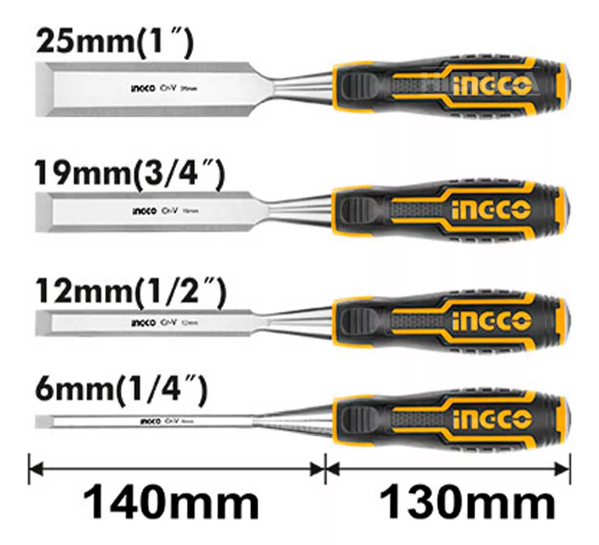 1 Set de 4 formones de Carpintero 6, 12, 19 y 25mm.
