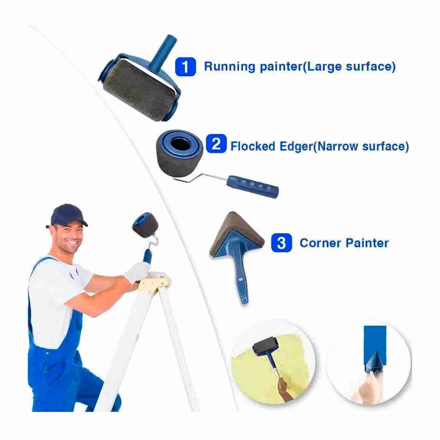 Los rodillos de pintura para pintar la pared, puerta, suelo, techo, techo u otra superficie grande, el borde de bloqueo para pintar marcos de puertas, ventanas u otra superficie estrecha, el cortador de esquina para pintar esquinas o bordes.