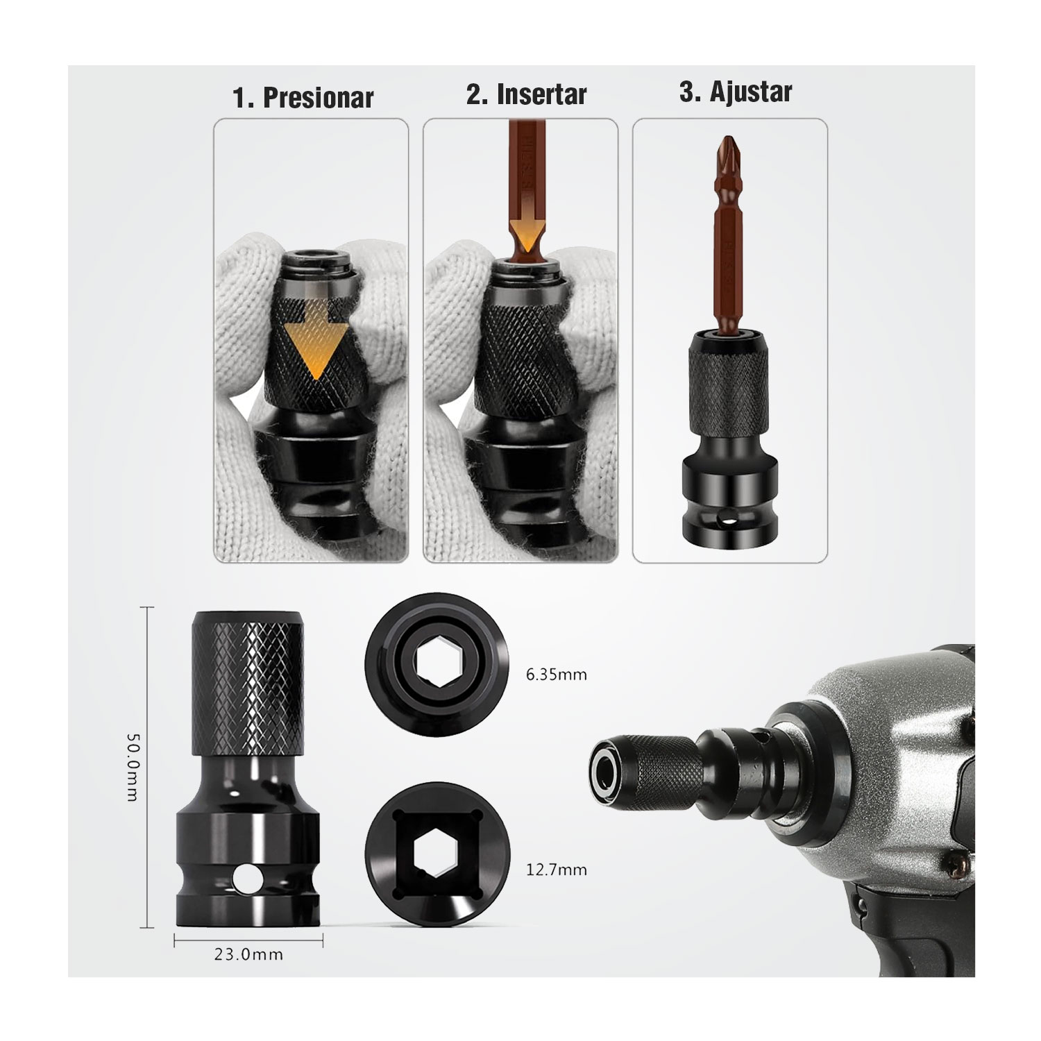 ADAPTADOR LLAVE DE IMPACTO 1/2'' ATORNILLADOR DRYWALL MADERA