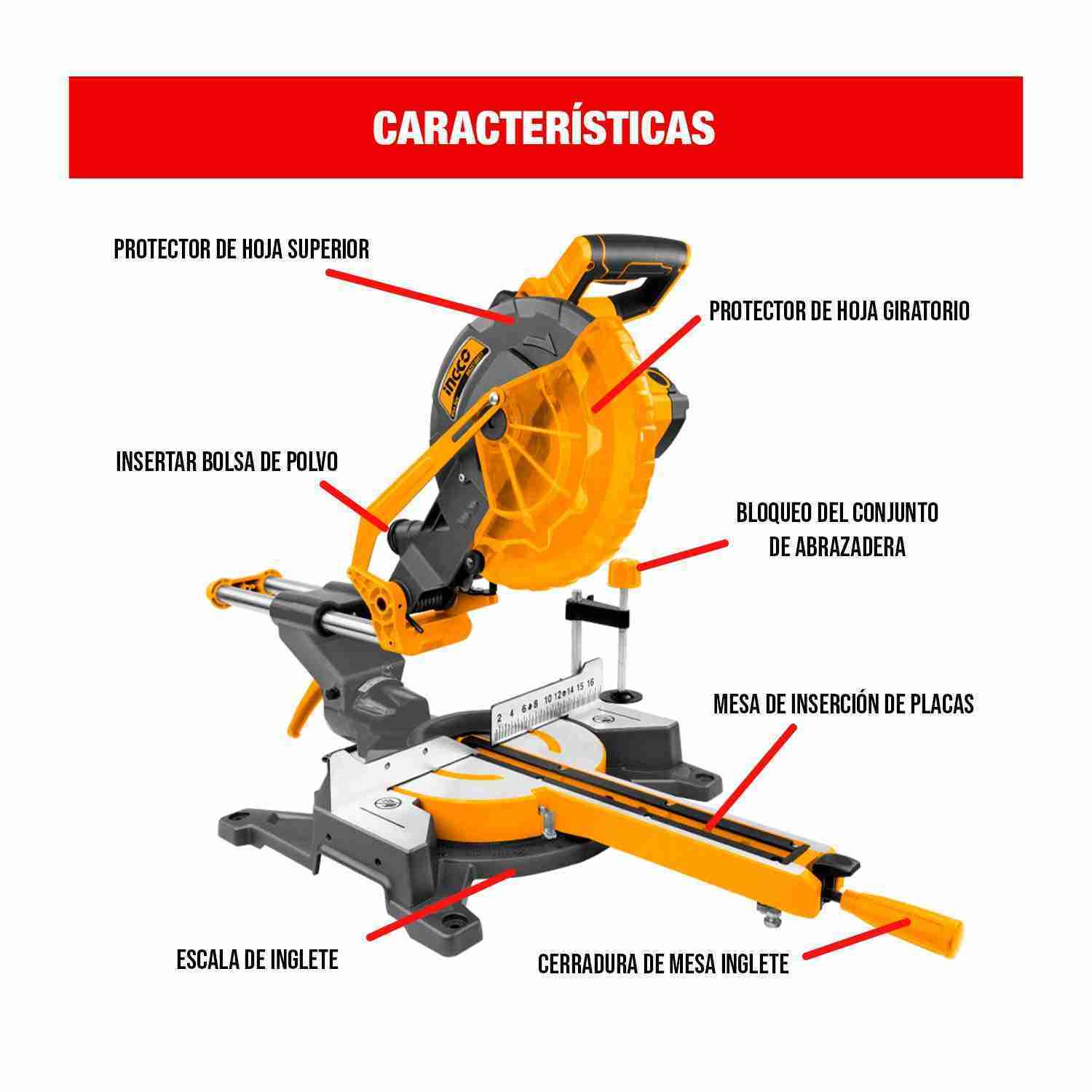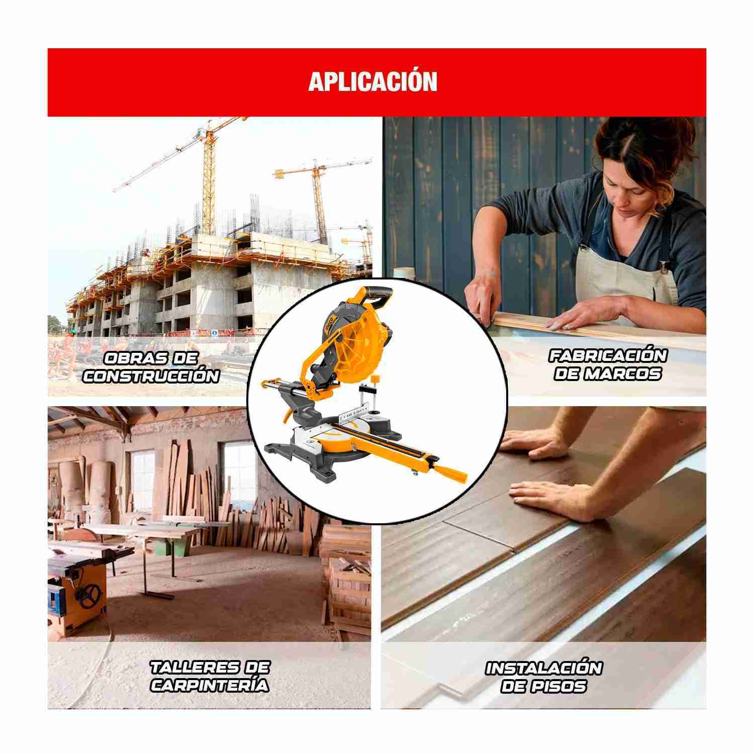 SIERRA INGLETADORA TELESCÓPICA 1800W 10″ INGCO CORTADORA MADERA