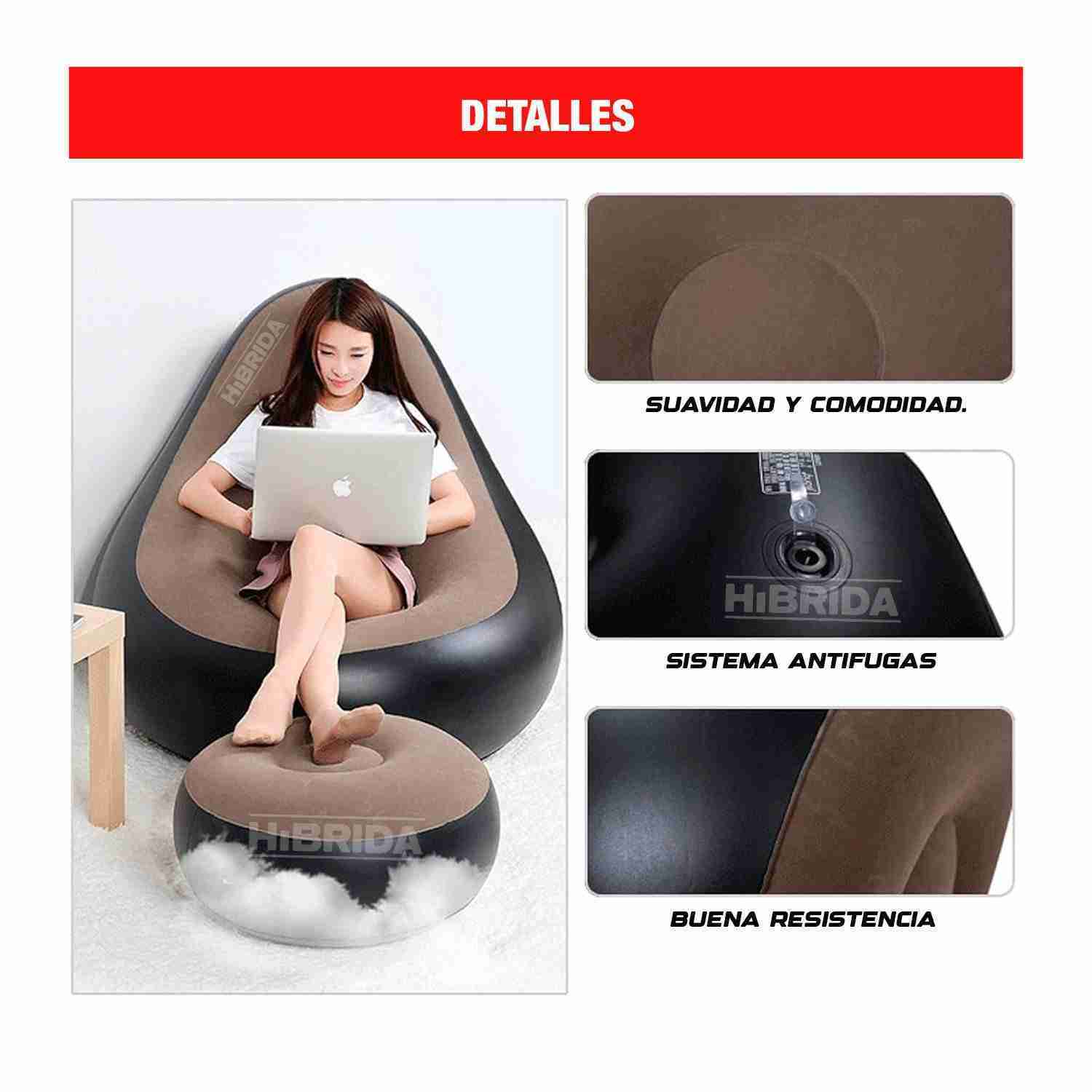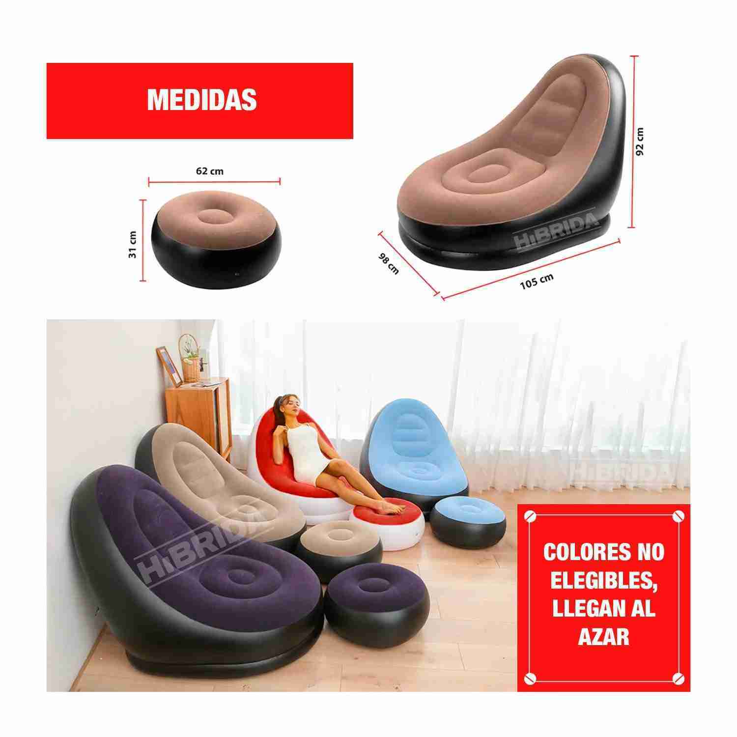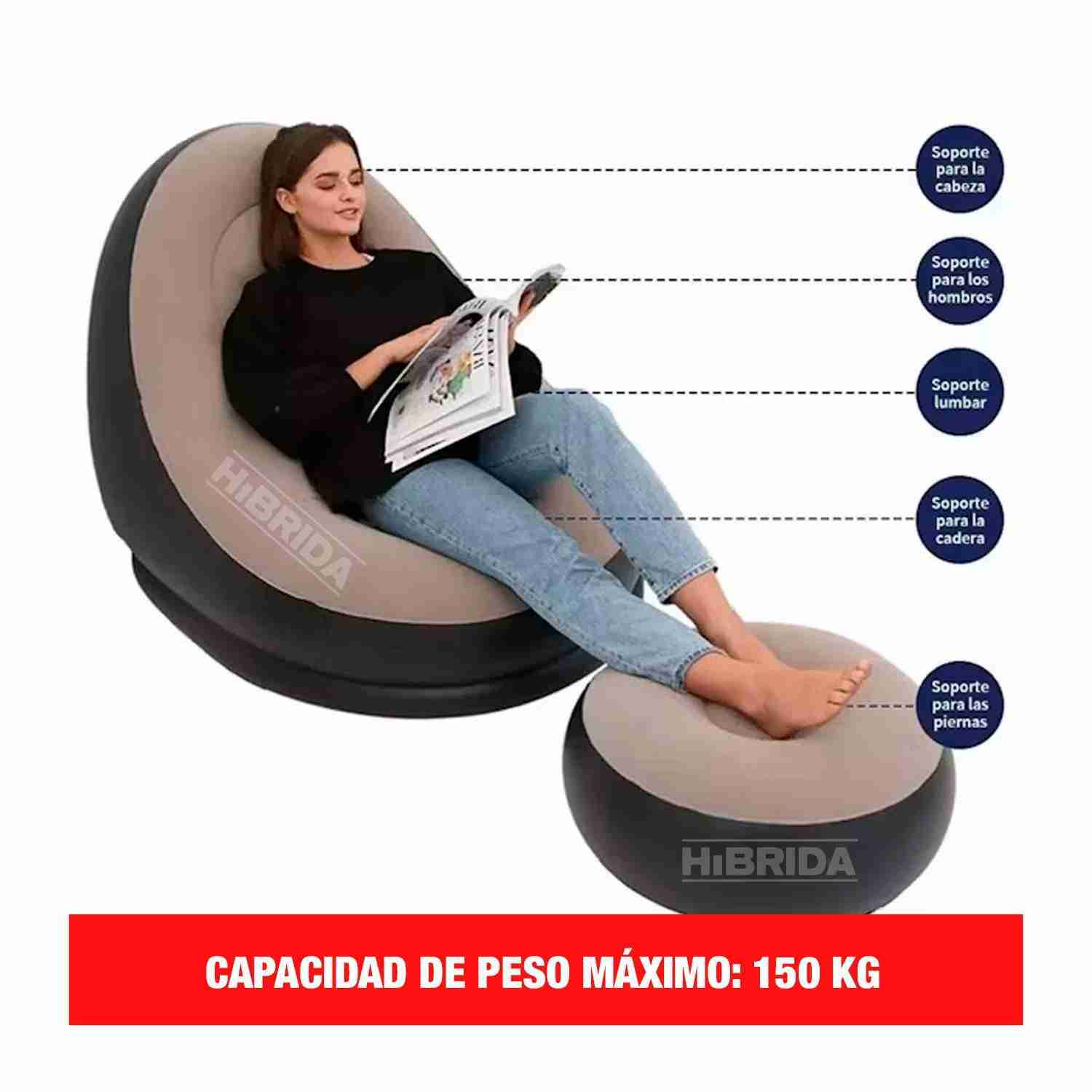 SILLÓN INFLABLE SOFÁ PUF CON INFLADOR PORTÁTIL POSAPIÉ