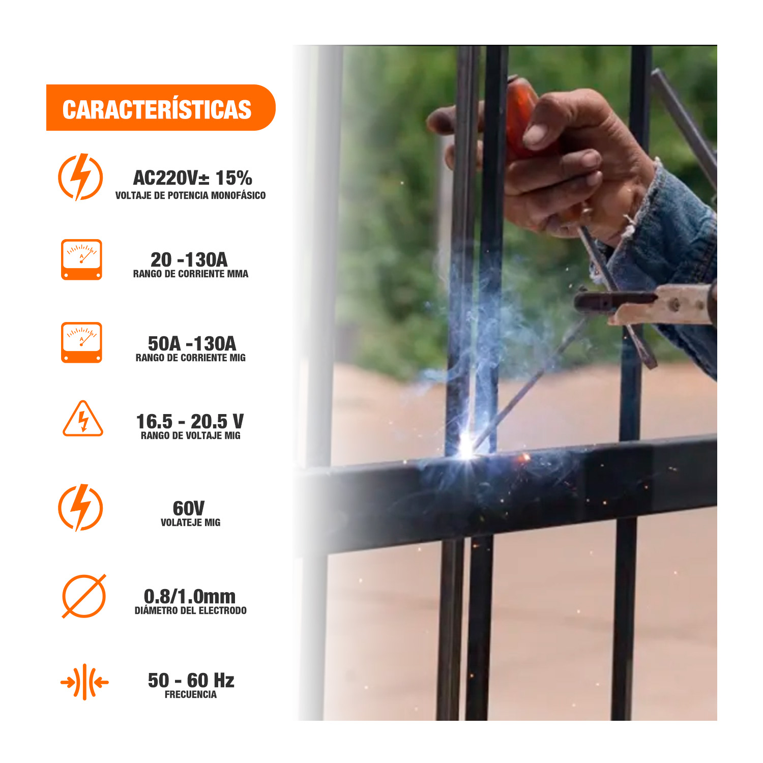 Rango de corriente MIG: - - - - - - - - - - - - - - -50 - 130A