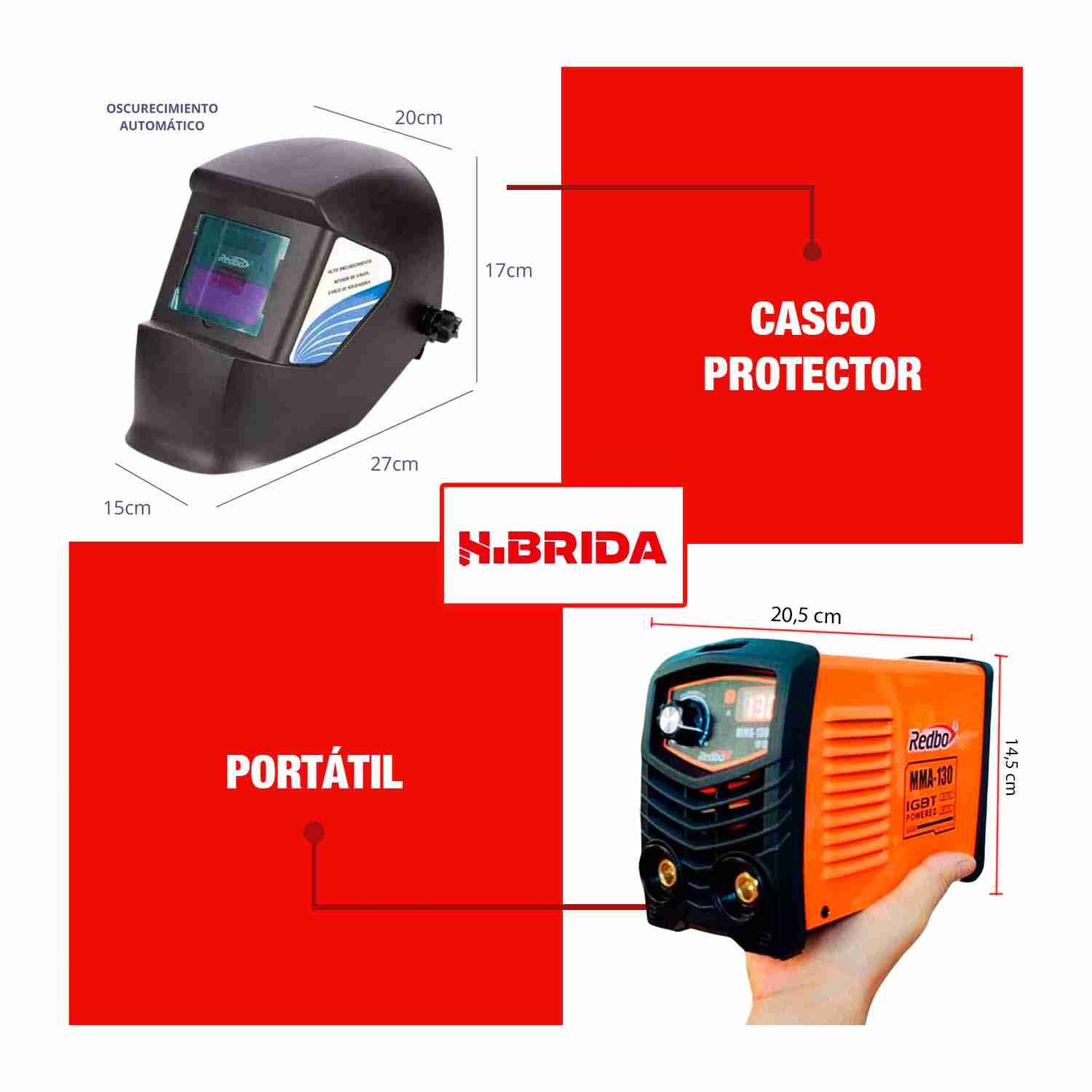 SOLDADORA INVERSORA REDBO COLOR NARANJA +CARETA FOTOSENSIBLE