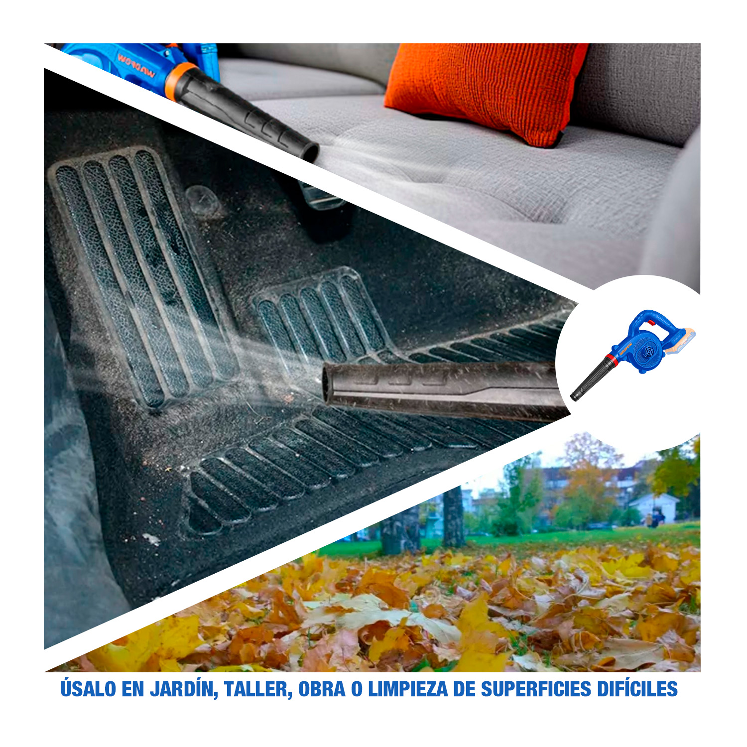 Un soplador inalámbrico potente y práctico, diseñado para hacer más fáciles tus tareas de limpieza en el taller, la obra o el hogar. Con su motor de alta velocidad y caudal de aire constante, elimina polvo, virutas y residuos en segundos, sin necesidad de cables ni complicaciones. Su diseño ergonómico y ligero te permite trabajar cómodamente por más tiempo, mientras que la batería recargable ofrece la libertad de moverte a cualquier lugar. La herramienta ideal para mantener tus espacios siempre limpios y listos para el trabajo.