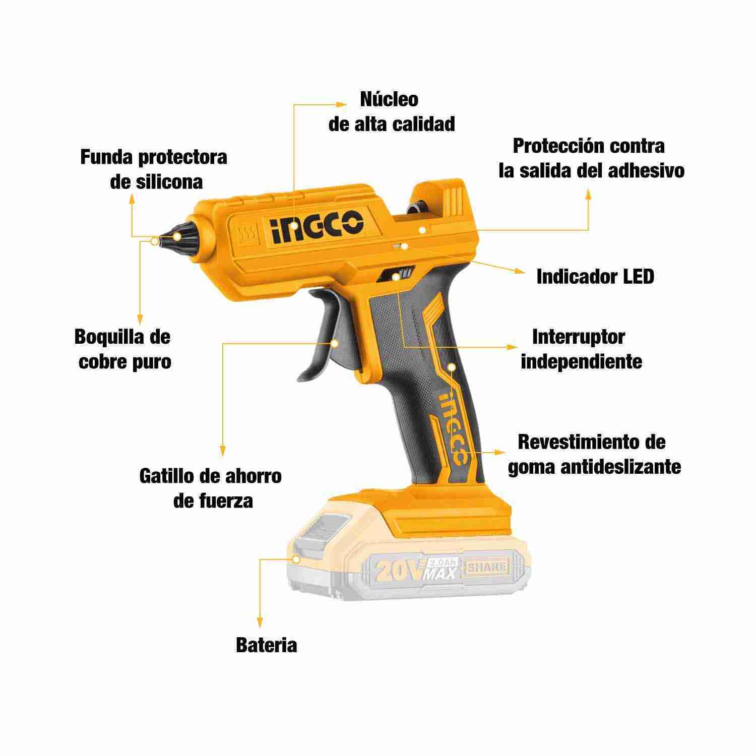 SOPLADOR INALÁMBRICO + PISTOLA SILICONA 20V INGCO + 1 BAT