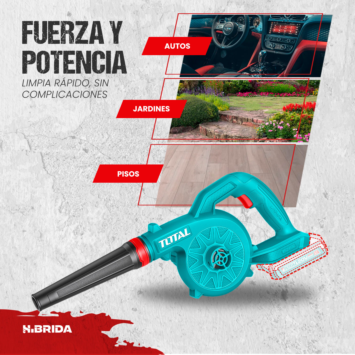 Sopladora inalámbrica de alto rendimiento diseñada para brindar una limpieza rápida, práctica y sin esfuerzo en todo tipo de espacios. Gracias a su funcionamiento sin cables, permite trabajar con total libertad en talleres, hogares, autos o exteriores, eliminando polvo, hojas y residuos con facilidad. Su diseño compacto y ergonómico facilita el manejo prolongado, mientras que su potente flujo de aire asegura resultados eficientes en menos tiempo. Ideal para quienes buscan una herramienta versátil, ligera y confiable para mantener cualquier área siempre limpia.