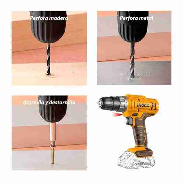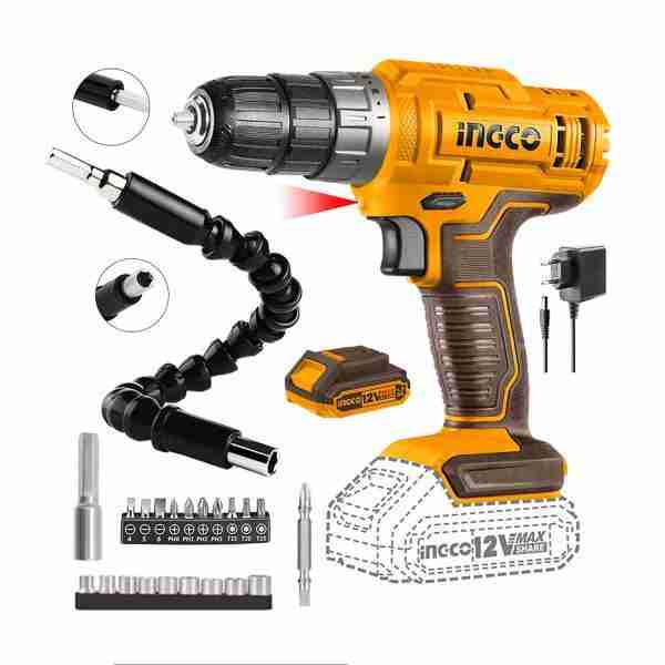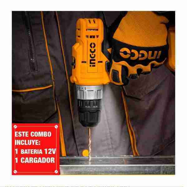 TALADRO ATORNILLADOR 12V INGCO INALÁMBRICO + EXTENSOR PUNTAS – CDLI1218