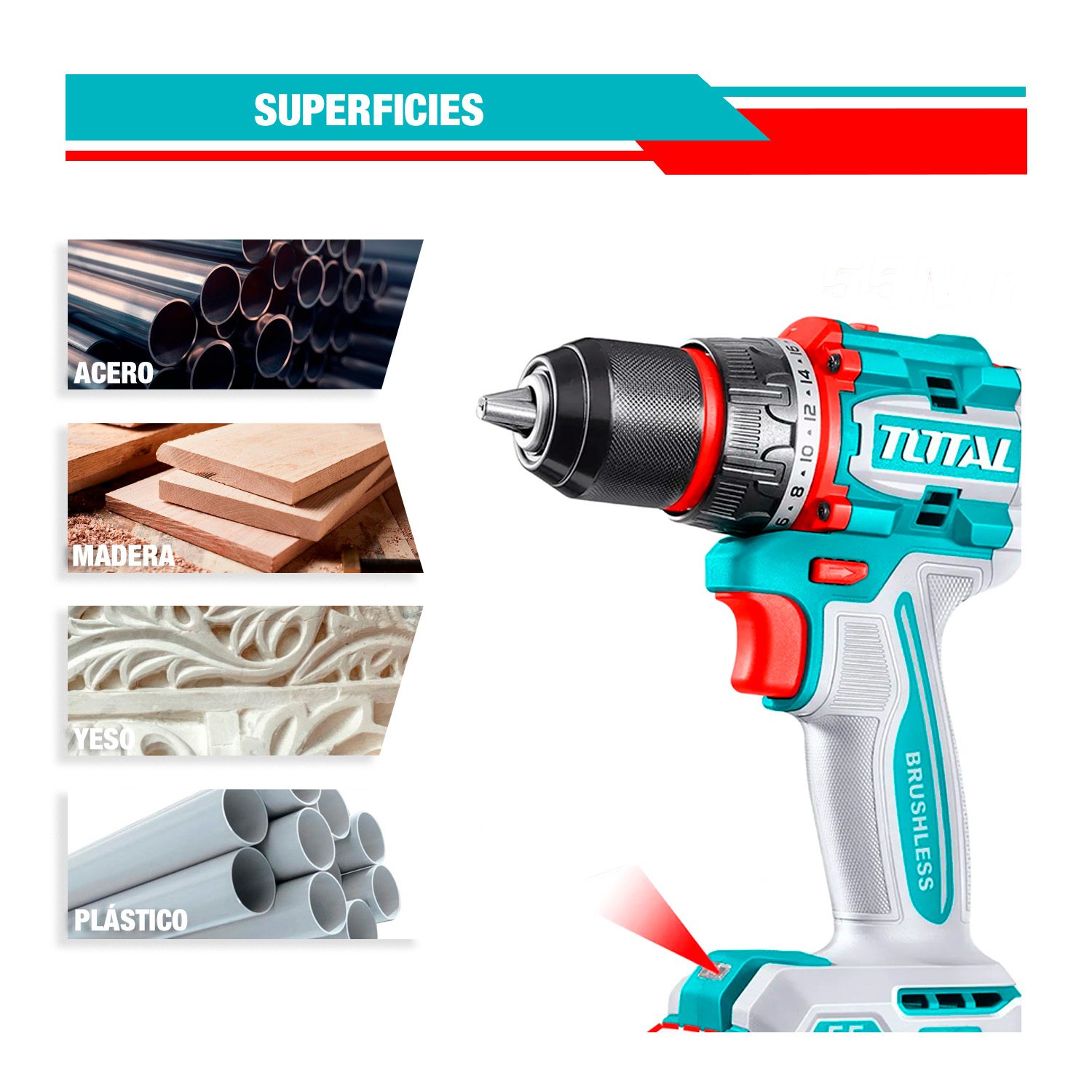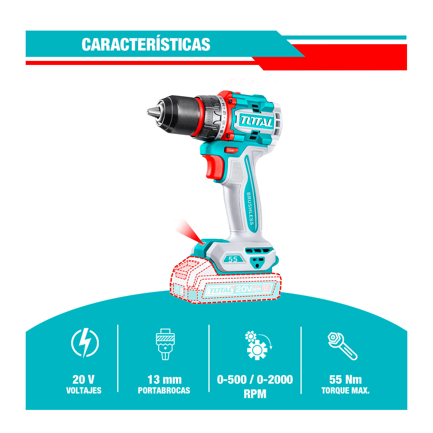 TALADRO ATORNILLADOR 55Nm 20V TOTAL - TDLI205582