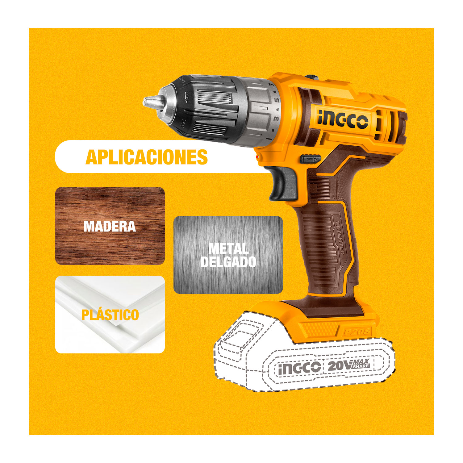 El INGCO CDLI200518 es un taladro atornillador inalámbrico de 20V, diseñado para trabajos de perforación y atornillado en madera, metal y plástico. Forma parte del sistema P20S, lo que permite usar la misma batería en múltiples herramientas INGCO. Destaca por su alto torque de 45 N·m, diseño ergonómico y función de bloqueo de husillo (Spindle Lock) para un cambio de brocas rápido y seguro.