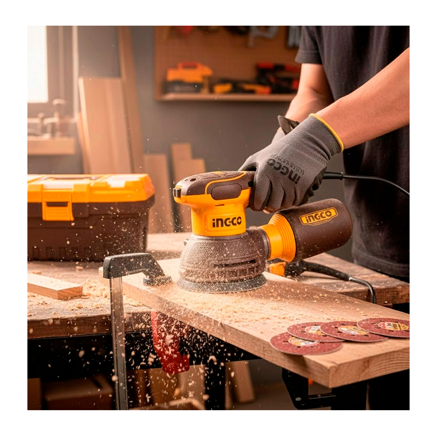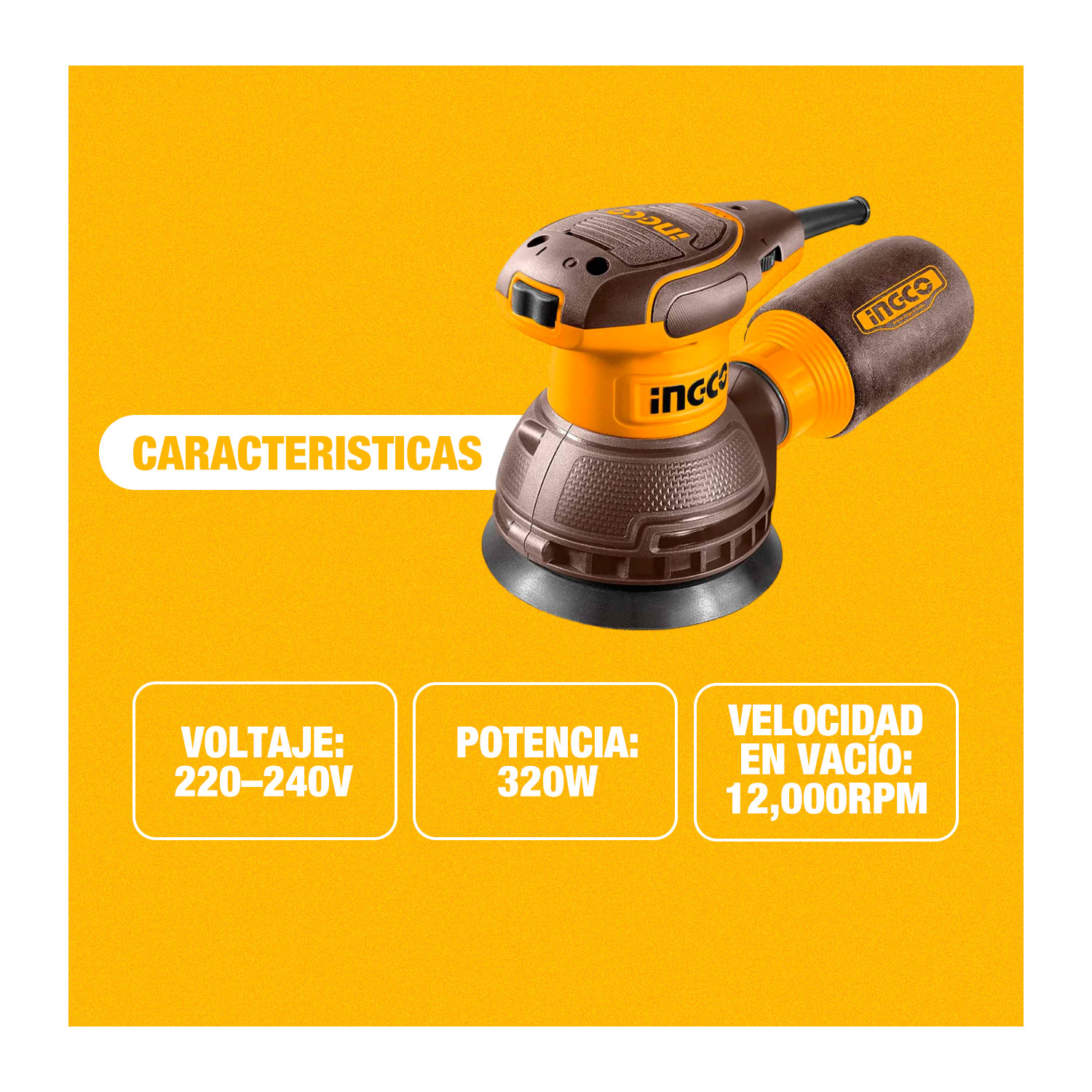 La lijadora roto-orbital INGCO RS3216 es una herramienta eléctrica de 320 W diseñada para el lijado y acabado de superficies como madera, metal y otros materiales en trabajos profesionales y proyectos de bricolaje. Equipada con un pad de lijado de 125 mm y velocidad variable entre 8 000 y 13 000 rpm, permite un control preciso según el tipo de tarea, mientras que su base con velcro facilita el cambio rápido de discos abrasivos. Su diseño ergonómico e incorporación de sistema de recolección de polvo la hacen cómoda y eficiente para uso prolongado, e incluye 5 papeles de lija y un set adicional de escobillas de carbón para mayor durabilidad.