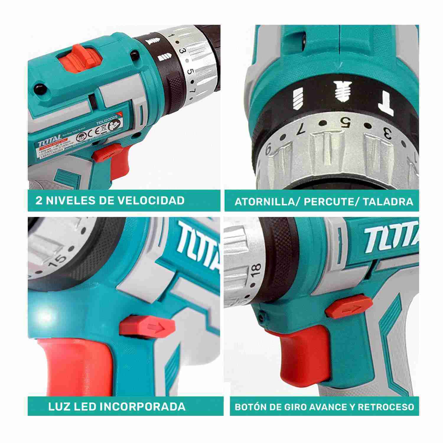 TALADRO ATORNILLADOR PERCUTOR 20V TOTAL TOSLI231003 MADERA – TOSLI231003