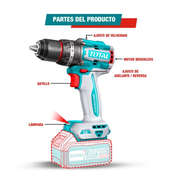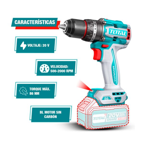 TALADRO ATORNILLADOR PERCUTOR BRUSHLESS 86NM TIDLI20868