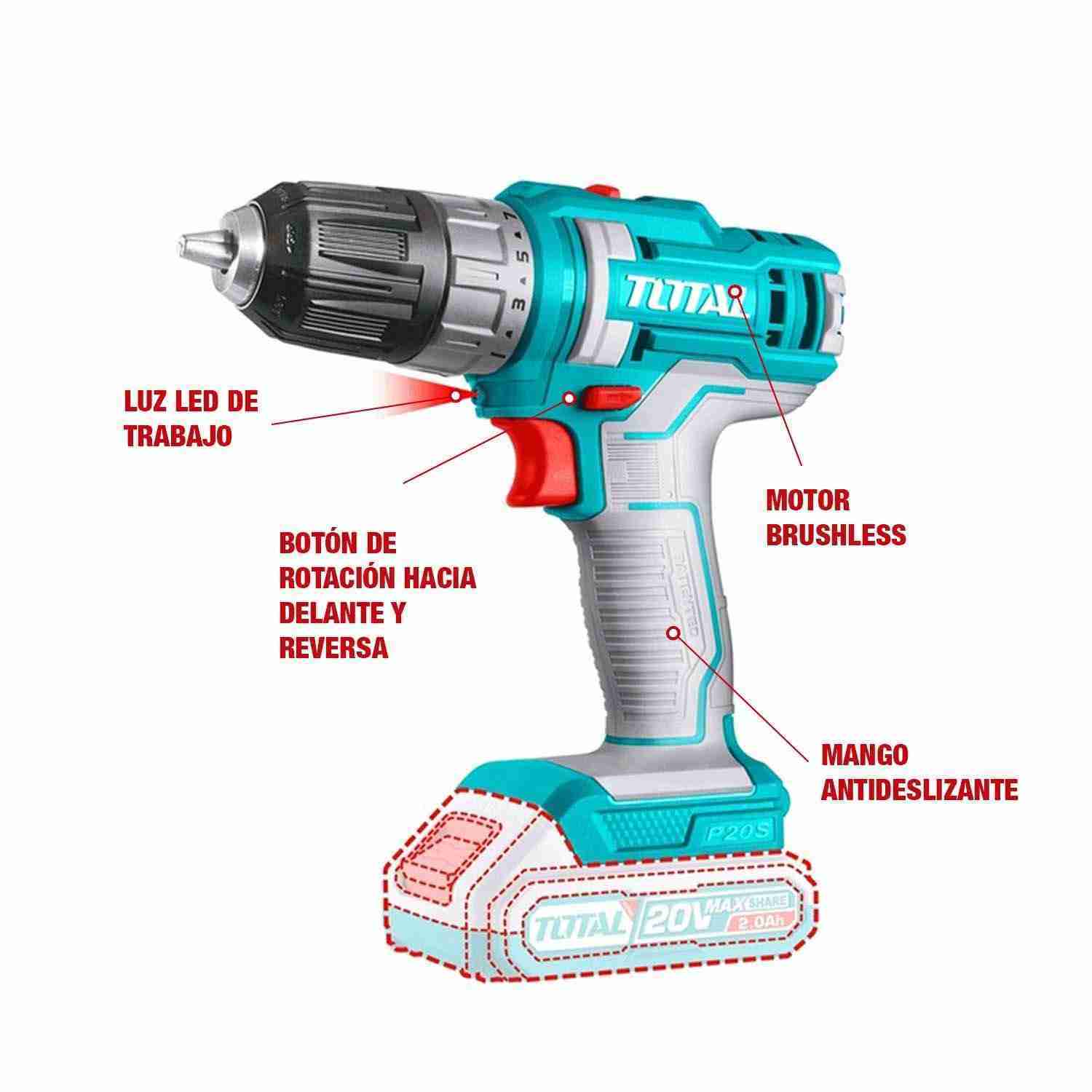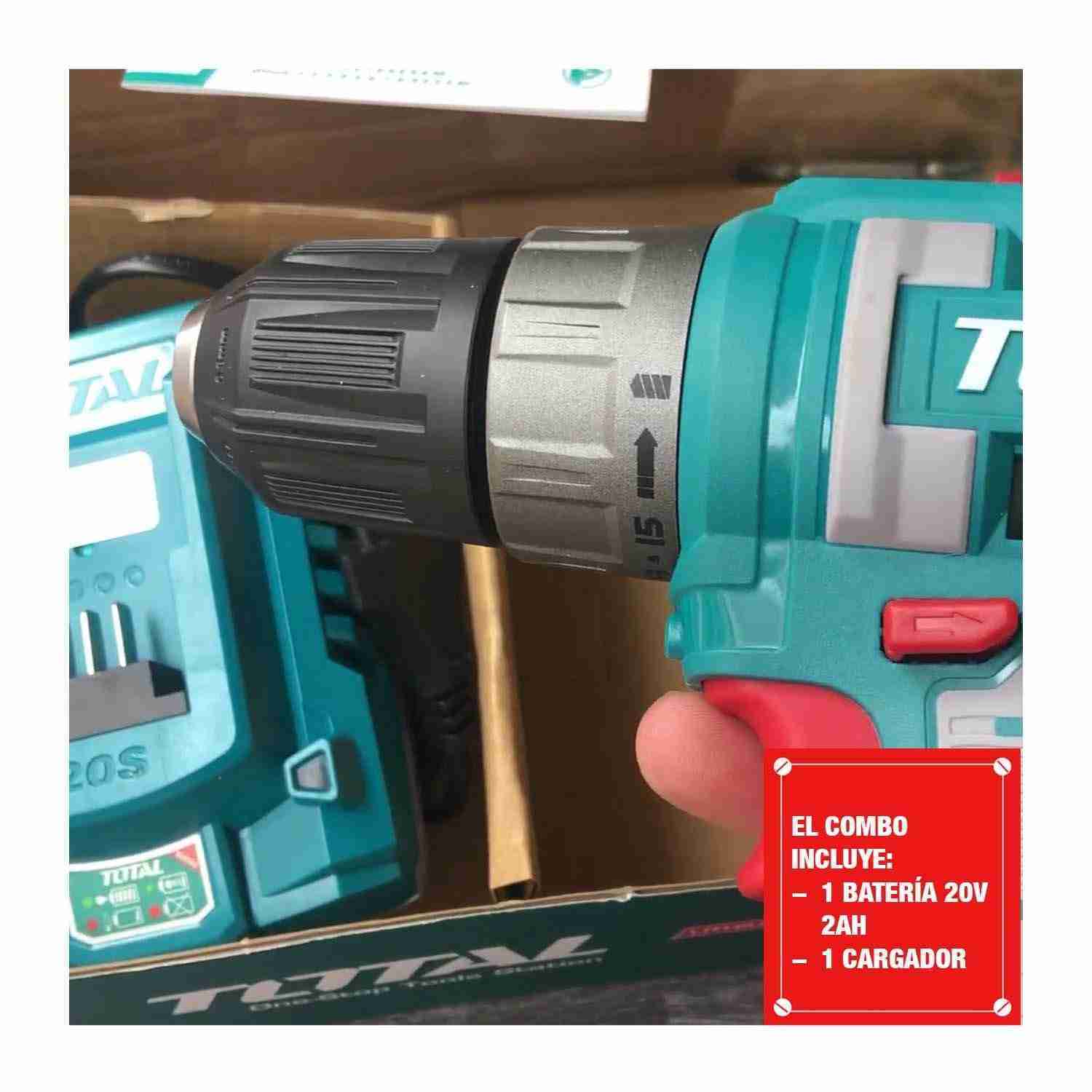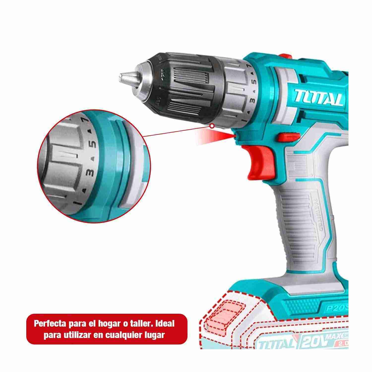 TALADRO INALÁMBRICO 20V TOTAL + HIDROLAVADORA 2.8L/MIN + 21 ACCS