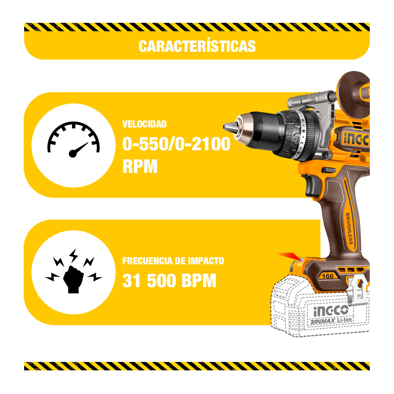 -Frecuencia máxima de impacto: 31 500 bpm.