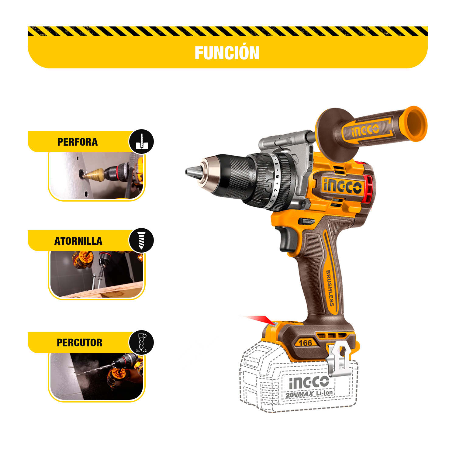 TALADRO ATORNILLADOR PERCUTOR INGCO - CIDLI201668