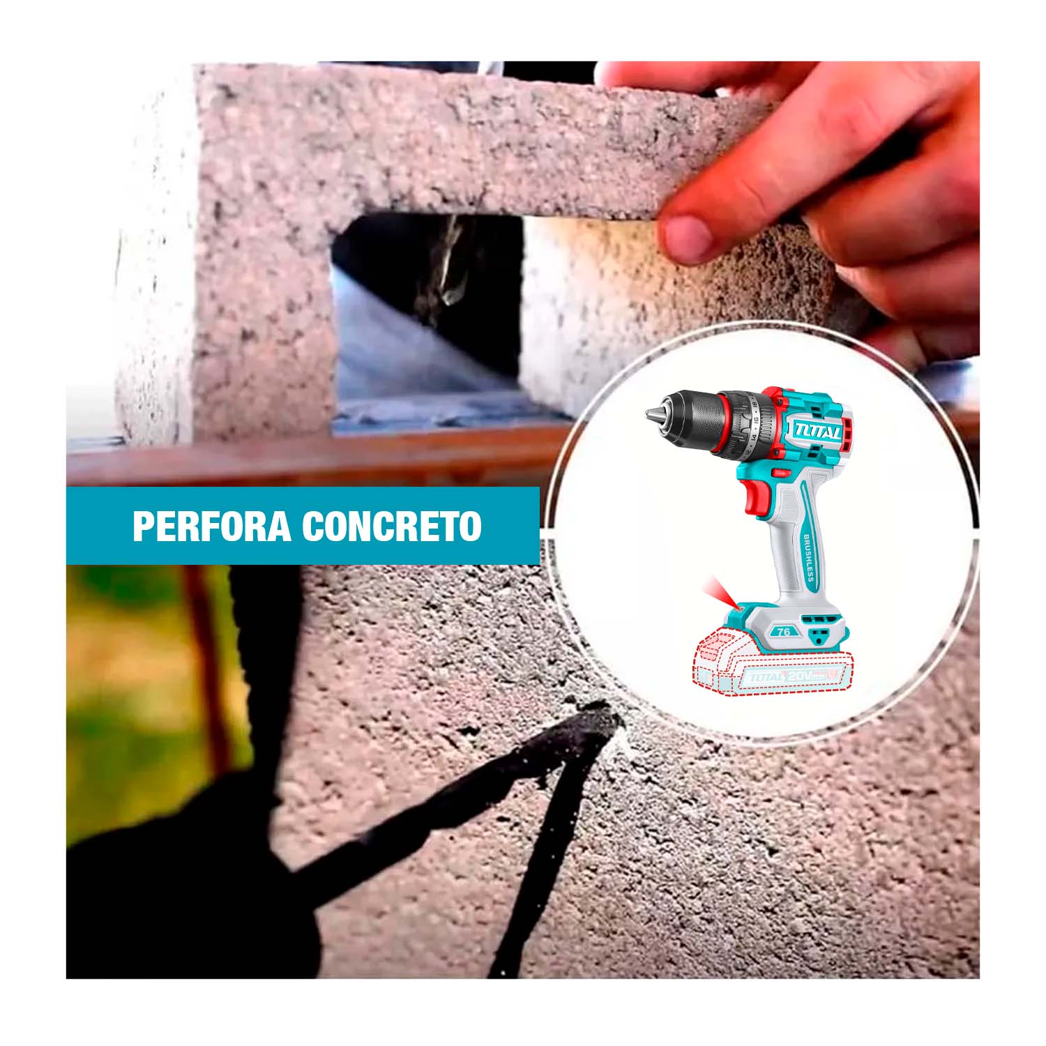 TALADRO PERCUTOR 76NM 20V BRUSHLESS 13MM TOTAL TIDLI20768