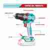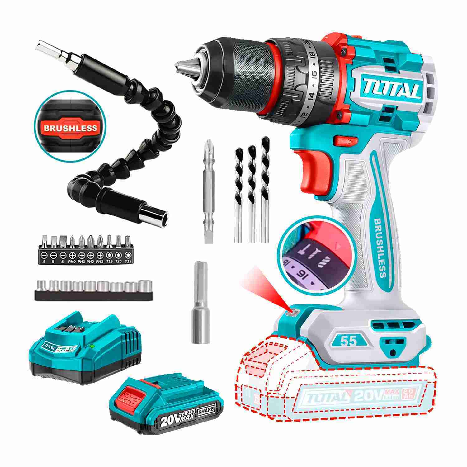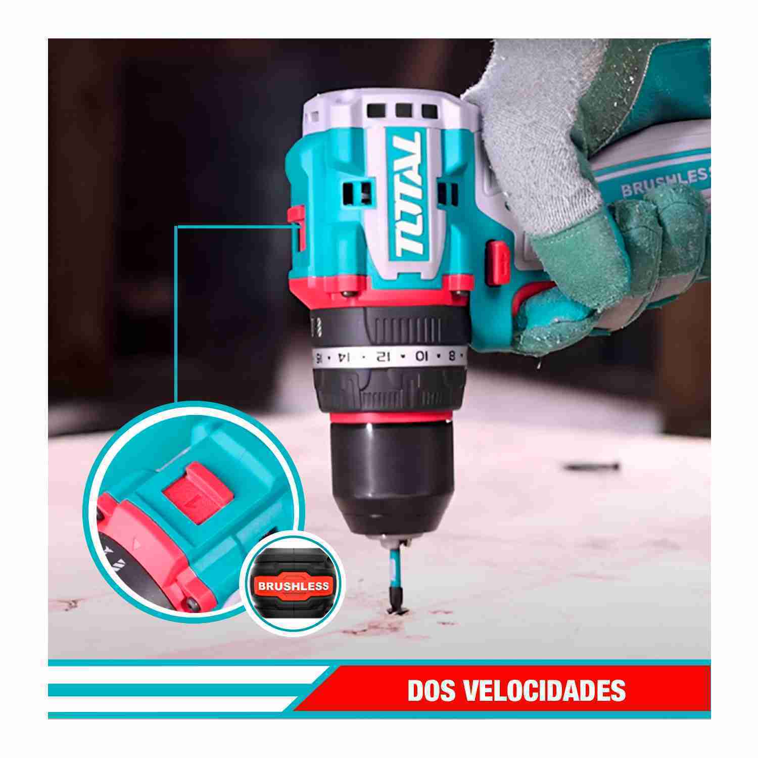Taladro Percutor Brushless + 1 Batería +1Cargador+21 Accesorios – Total