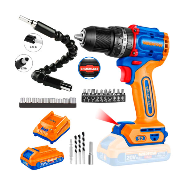 ESTE COMOBO INCLUYE: 1 TALADRO ATORNILLADOR C/PERCUTOR + 1 BATERÍA DE 20V 2.0AH + 1 CARGADOR + 1 SET DE ACCESORIOS PARA ATORNILLADOR