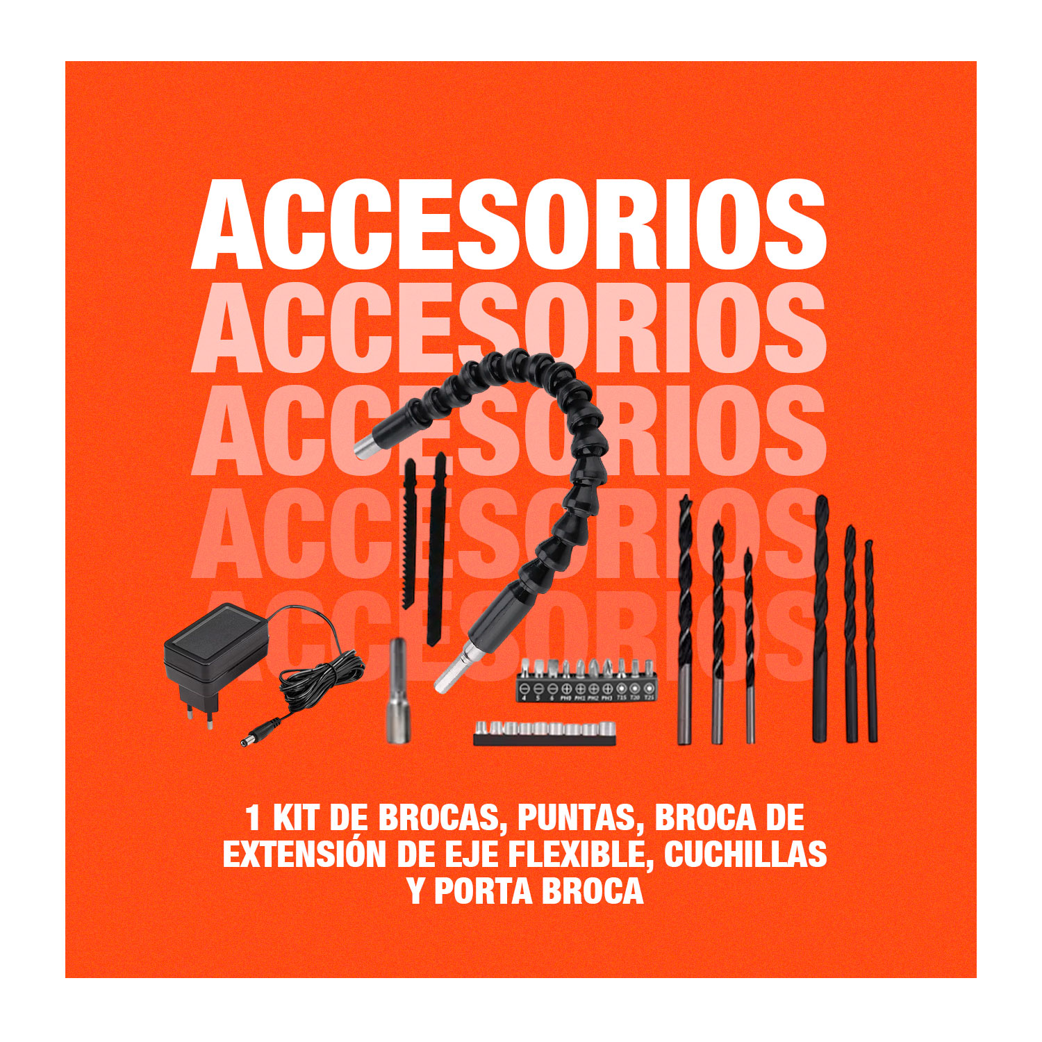 - Kit de Brocas, Puntas, Broca de extensión de eje flexible y Porta Broca
